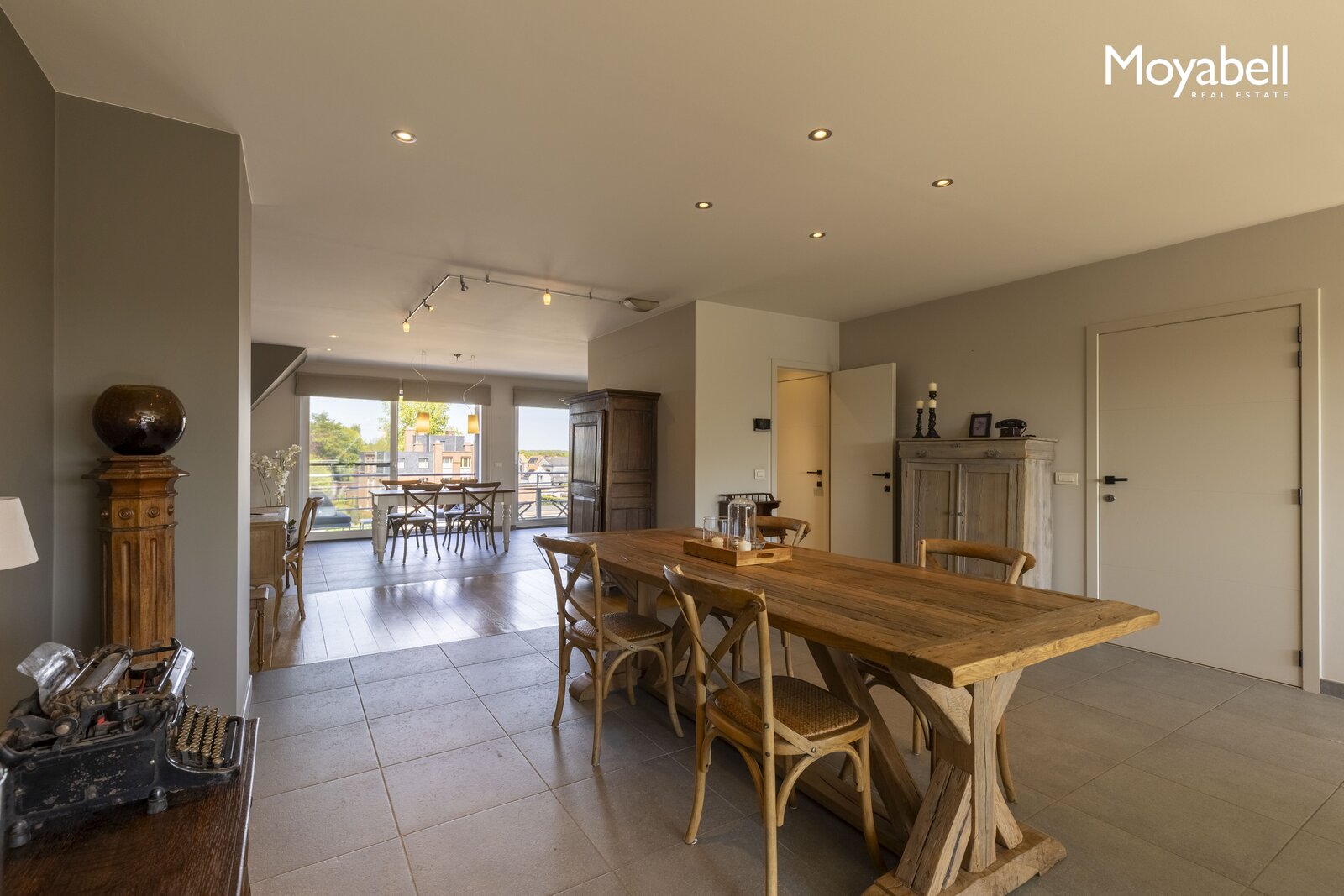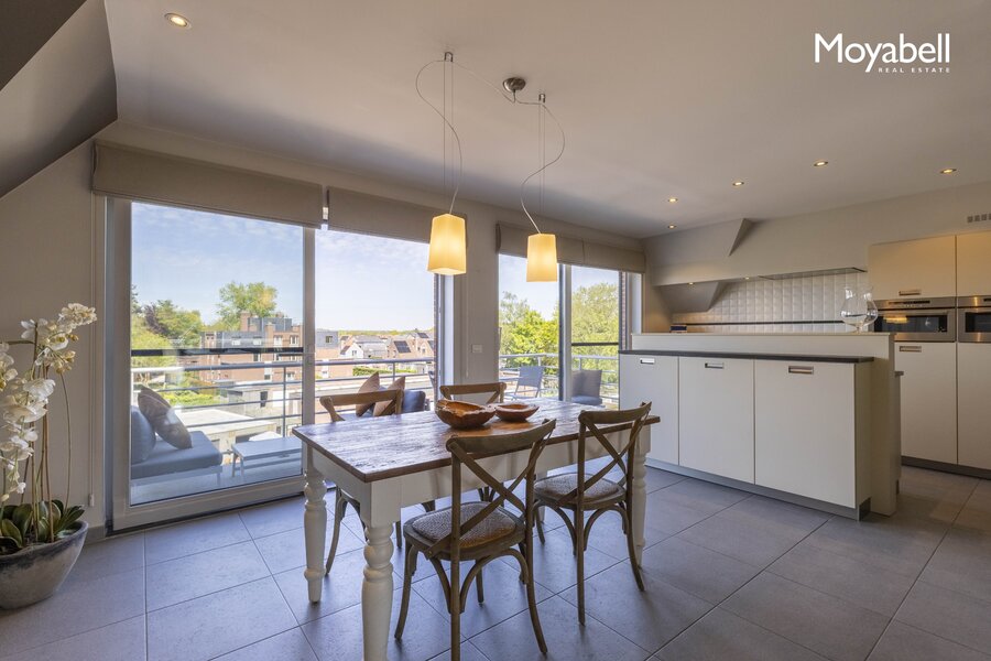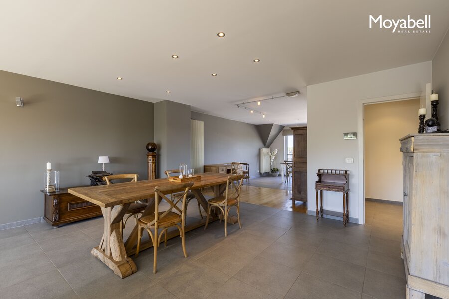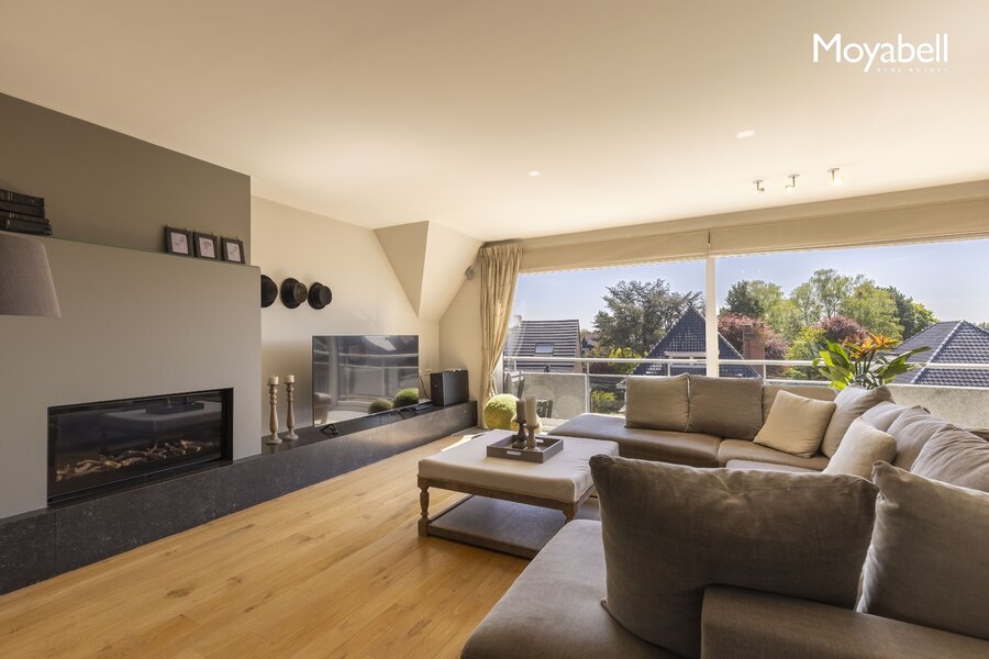 De ruime leefruimte met grote raampartijen baadt in het natuurlijke licht en biedt een prachtig uitzicht. De leefruimte sluit naadloos aan op de eetplaats en de volledig geïnstalleerde open keuken met gezellige ontbijthoek. Een vestiaire en gastentoilet vervolledigen deze verdieping. Via grote schuiframen heeft u directe toegang tot de terrassen. Dankzij de gunstige oriëntatie geniet u de hele dag door van de zon op één van de twee ruime terrassen, samen goed voor meer dan 36 m².