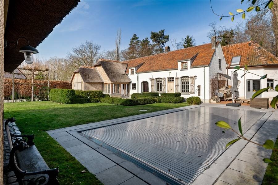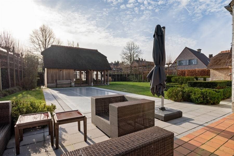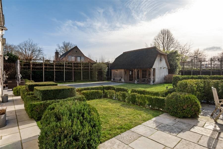De aangelegde tuin biedt maximale privacy en een verwarmd overloopzwembad van 4 x 10 m met poolhouse. Regenwaterput van 10.000 liter.