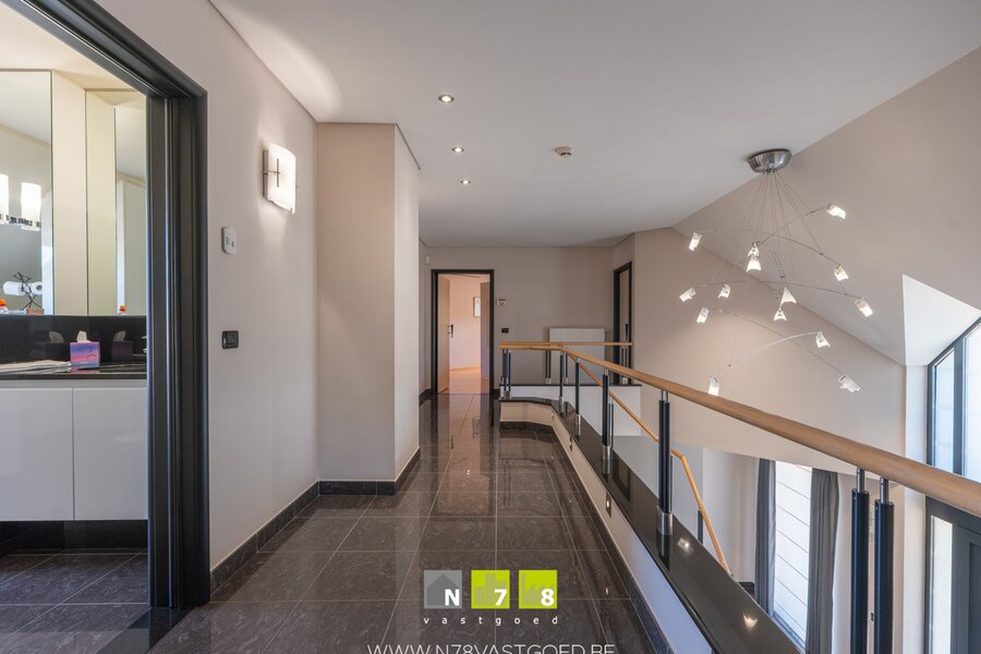 - Overloop (17,10m²): open vide, keramische tegelvloer.