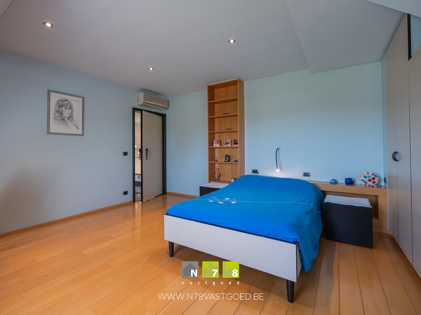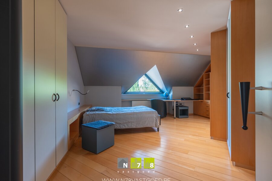 - Slaapkamer 4 (22,44m²): wandkasten met bureau, airco, TV- en internetaansluiting, parketvloer.