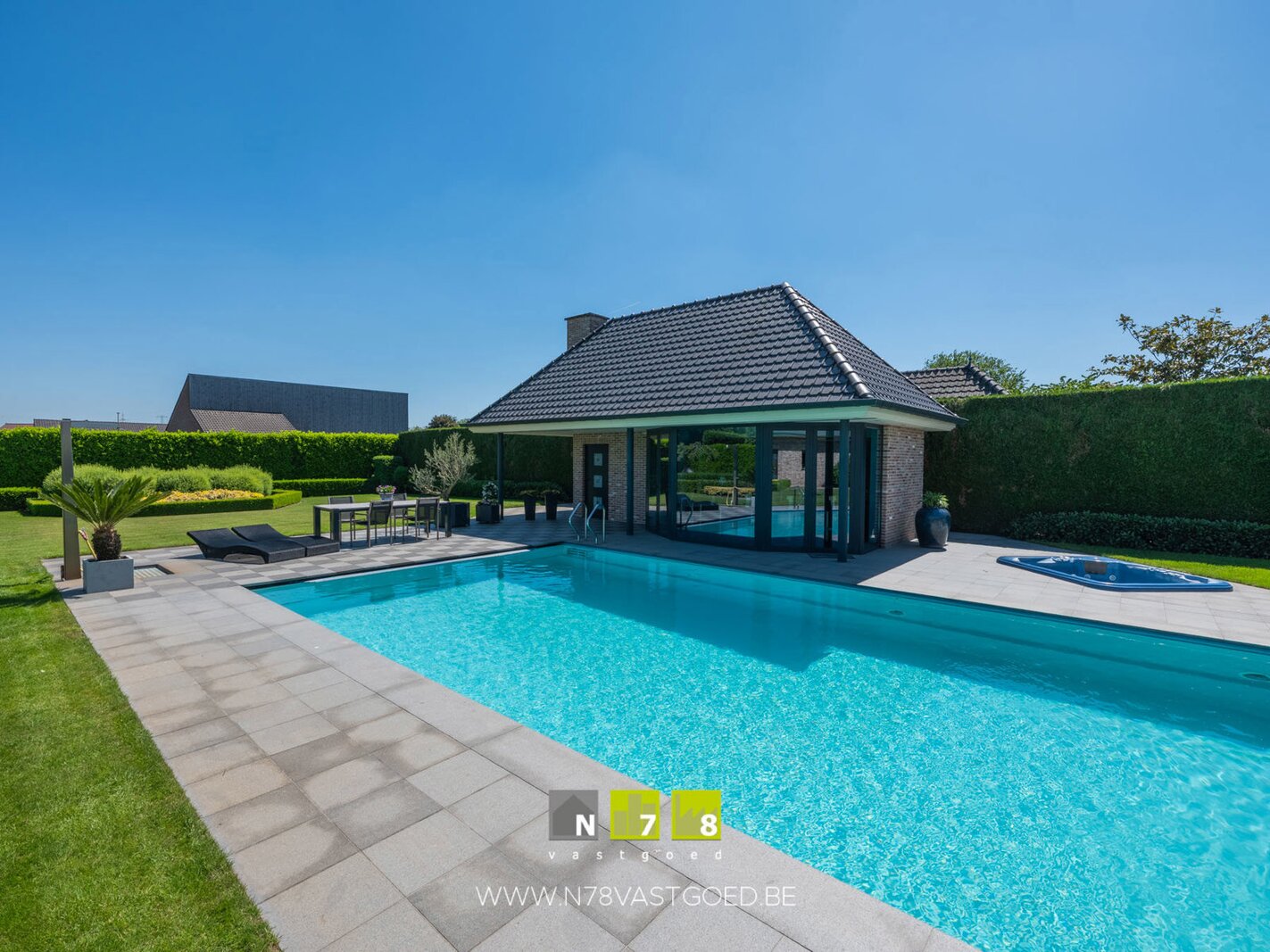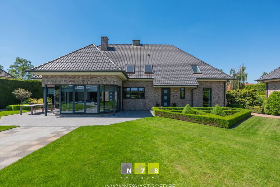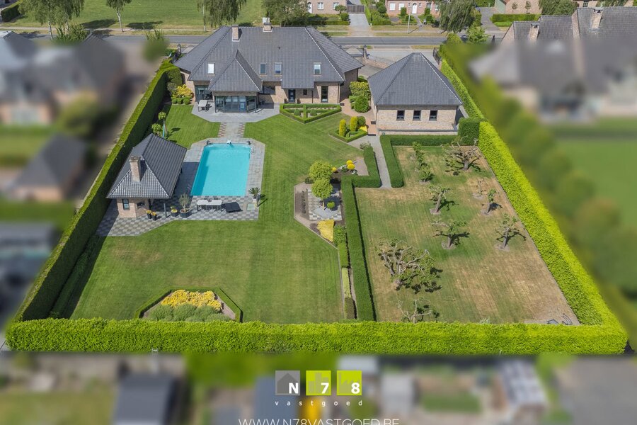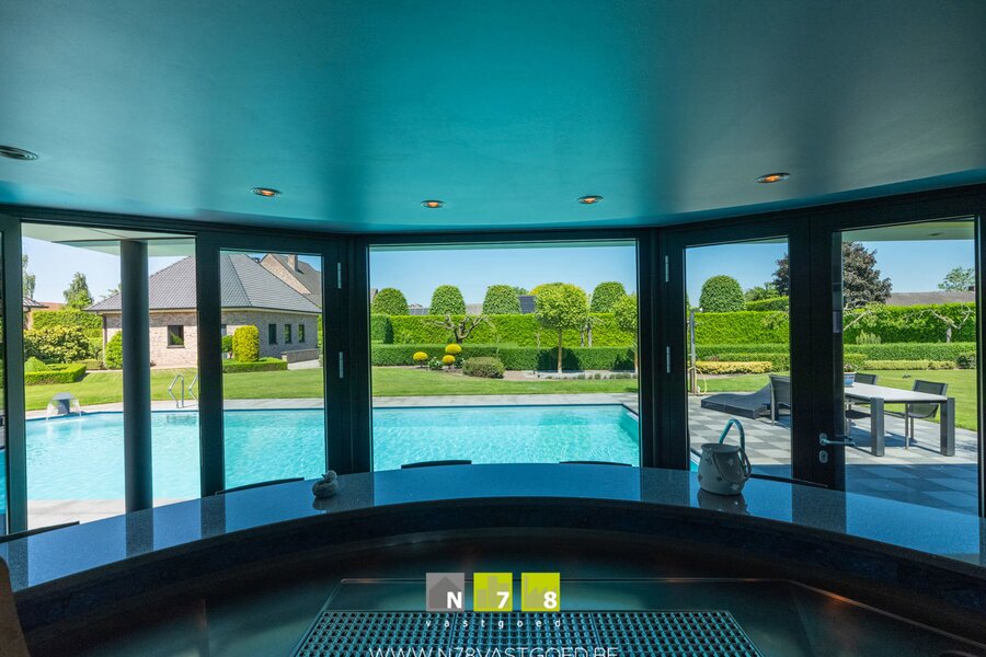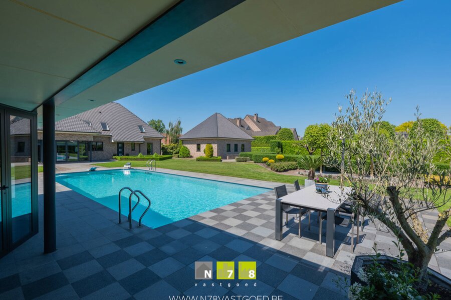 INSTAPKLARE VILLA MET 4 SLAAPKAMERS, 3 DUBBELE (VRIJSTAANDE) GARAGE, PRACHTIGE TUIN MET VERWARMD ZWEMBAD, JACUZZI EN POOLHOUSE OP 32A09CA TE BREE.