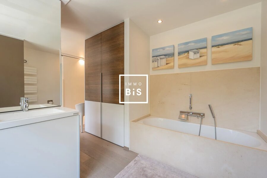 This beautiful villa is discreetly located in a quiet and green area of the Zoute, within walking distance of the Royal Zoute Golf Club.