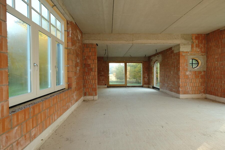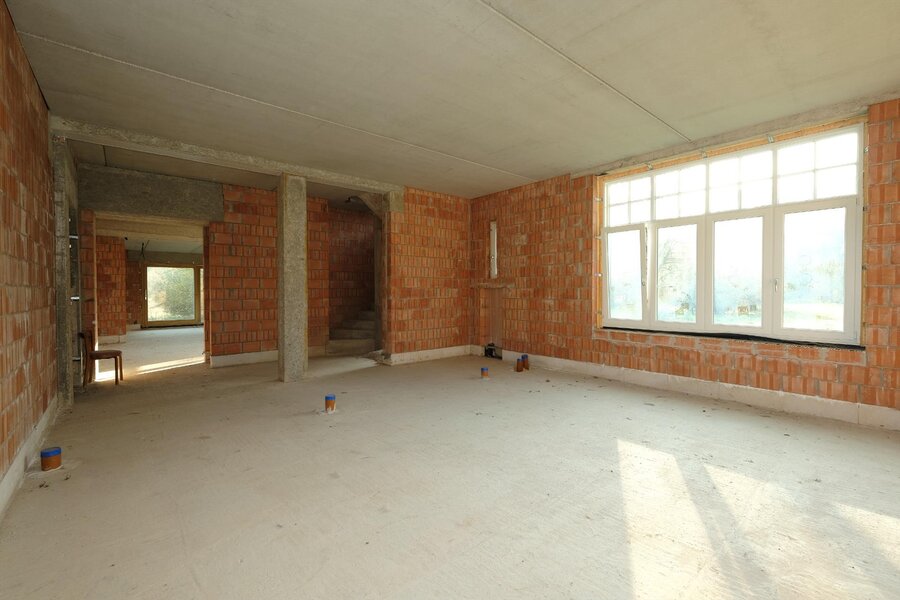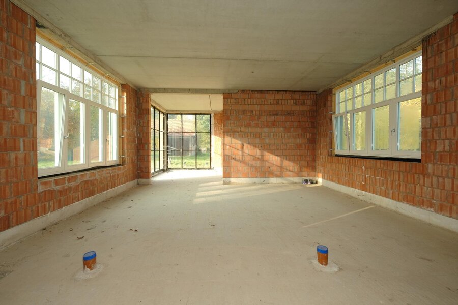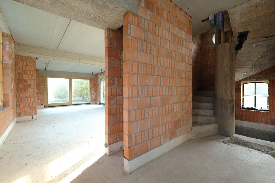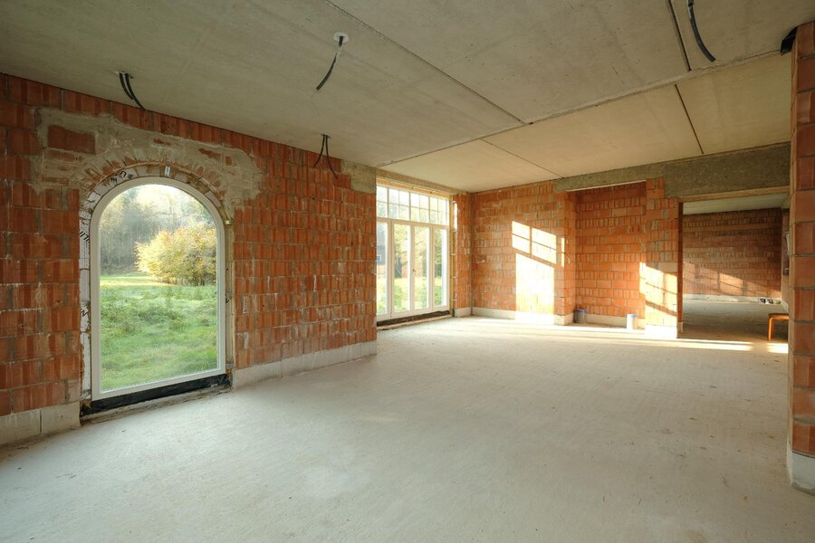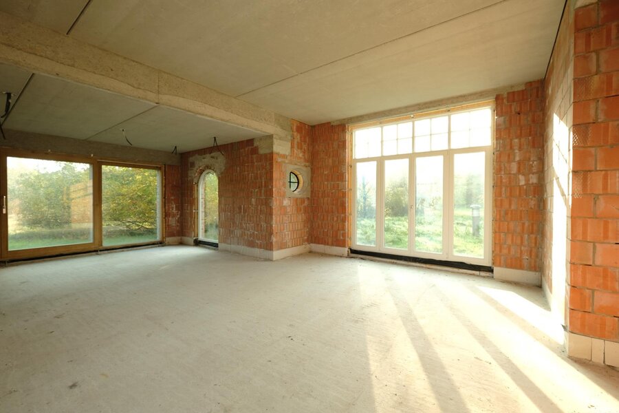 Romantisch nieuw gebouwd landhuis (ontwerp van architect Gert van Zundert) met 4 slaapkamers en ca. 700 m² bijgebouwen (oa paardenstallen). Deze nieuwe woning is quasi afgewerkt in ruwbouw. (casco) Vloeroppervlakte van ca 500/600 m² met ca. 12 ha. eigen grond, oprijlaan van ca 1,5 km in een domein van 300 ha prachtige bossen en grote vijverpartij van ca. 5 ha. Mooie verzichten over de prachtige weilanden omgeven door bomen en bovendien vlot bereikbaar via de autobaan. Ideaal voor de natuurliefhebber. Diverse mogelijkheden: bv plattelandstoerisme, bijkomende gebouw of constructies (recreatieve infrastructuur) creëren rond de bestaande gebouwen,...