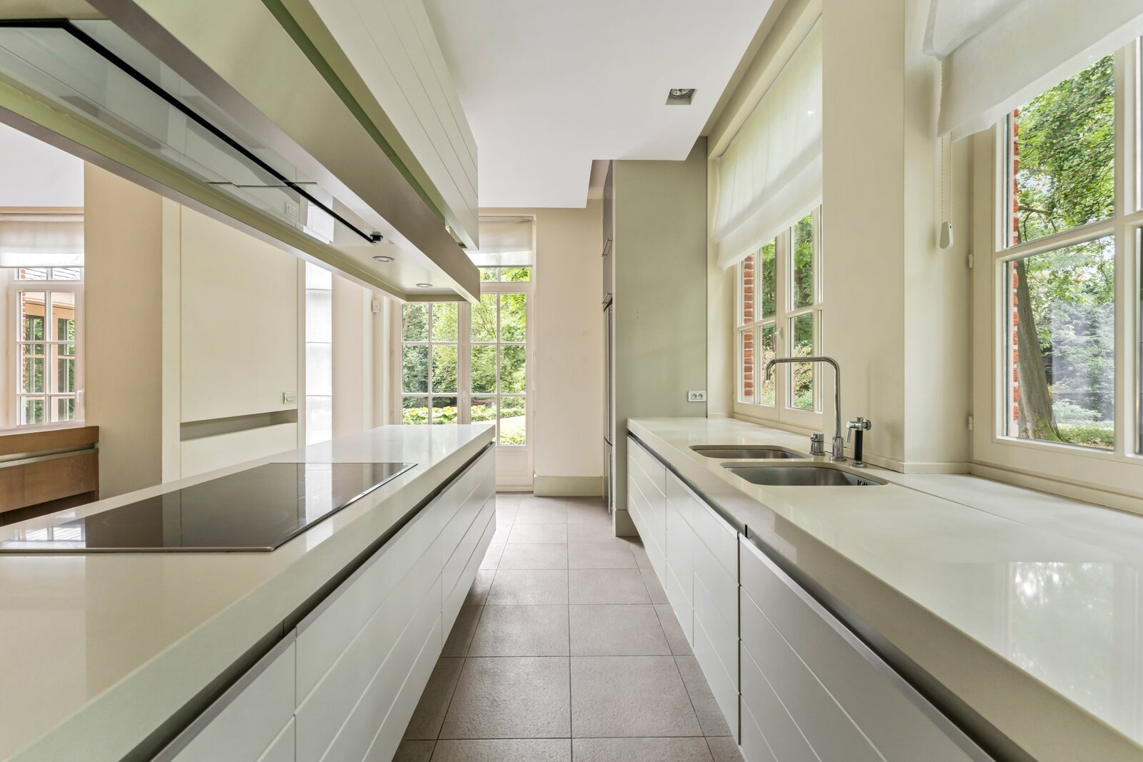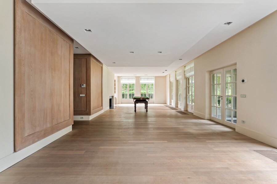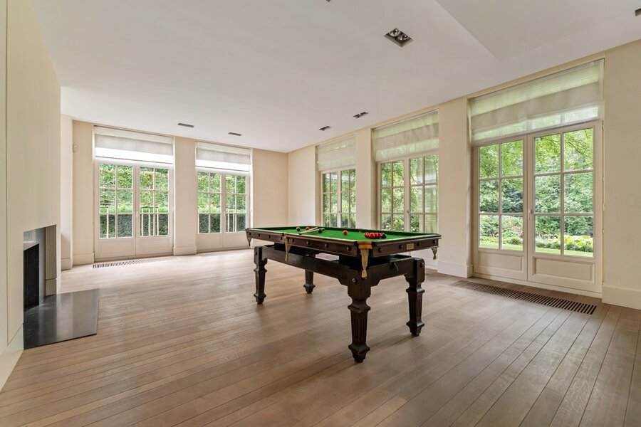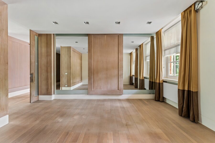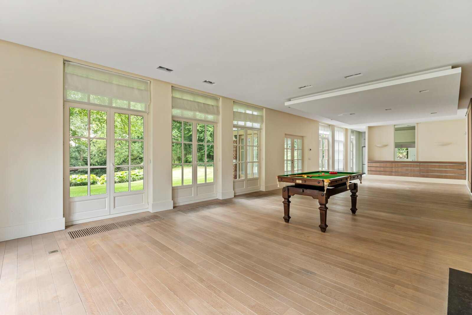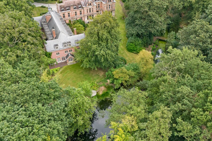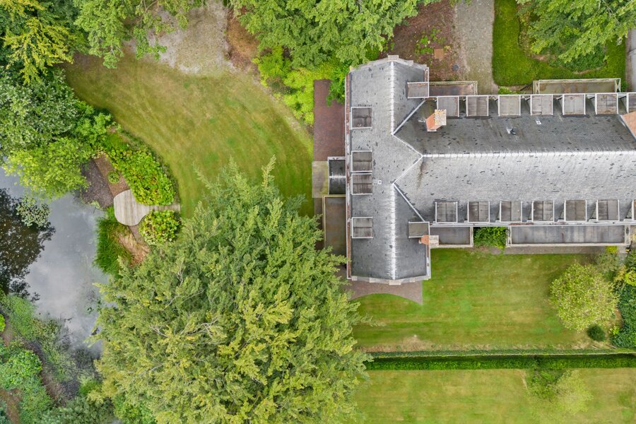 Via de imposante oprijlaan van het parkdomein komen we achteraan, via een automatische poort, tot bij de parking van het gebouw en het appartement. U kan ervoor kiezen om het appartement te betreden via de gemeenschappelijke inkomhal of via de zij-ingang aan de keuken, uiteraard handig als u met boodschappen toekomt. Vanuit de riante leefruimte (ca.90m²) heeft u een prachtig zicht en toegang tot de private tuin met vijver. Aan de vijver kan u genieten aan het ponton. De keuken is zeer compleet uitgerust met alle luxe die u verwacht. Vanuit de keuken kan u naar de ruime kelder, waar zich ook de aansluitingen bevinden voor wasmachine/droogkast. De mastersuite is uitgerust met dressingkasten en ligt tegenover de hoofdbadkamer. Deze heeft een vrijstaand ligbad, een douche en een dubbele wastafel in marmer. De andere slaapkamer heeft een private douche en wastafel. Ten slotte is er nog een gastentoilet.