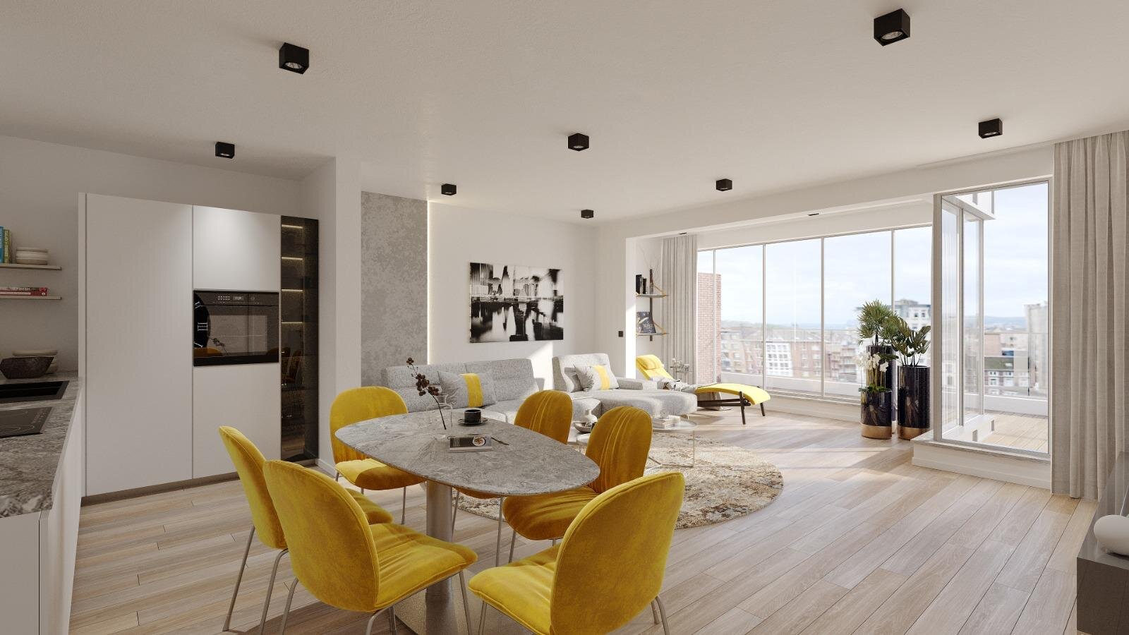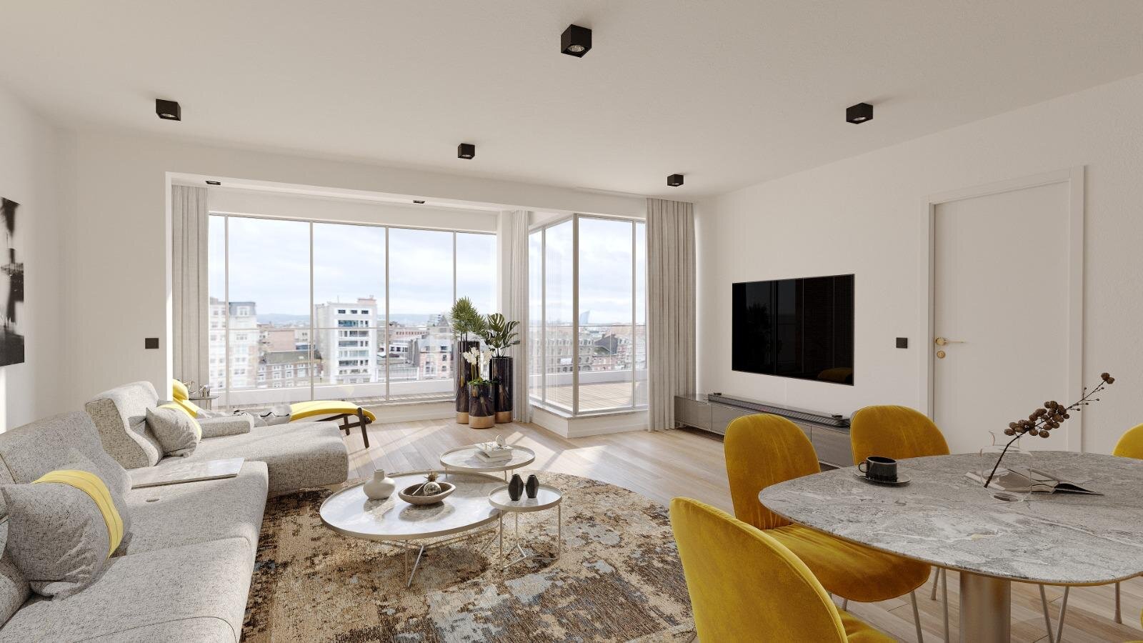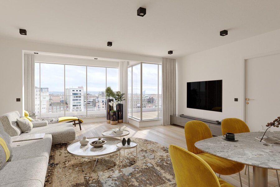 ERA Blavier presenteert dit prachtige duplex penthouse, gelegen op de 6e en bovenste verdieping van een prestigieuze residentie. Volledig gemeubileerd verkocht met hoogwaardig meubilair van DSTYLE en ingericht door een interieurarchitect, biedt het een luxueuze en verfijnde woonervaring.