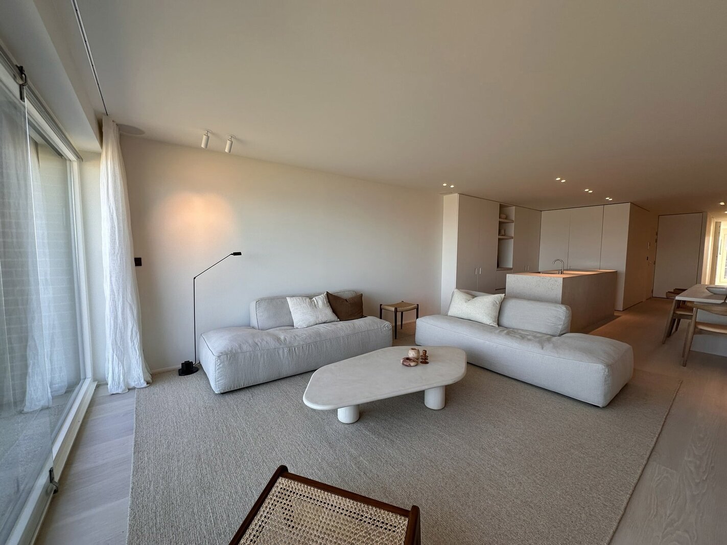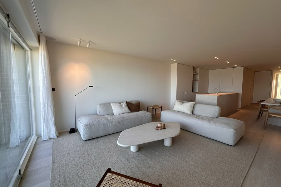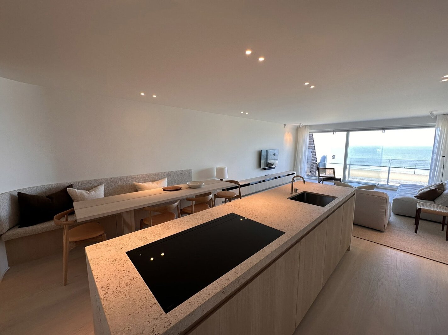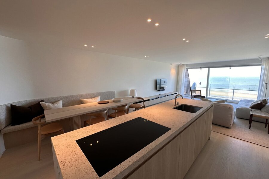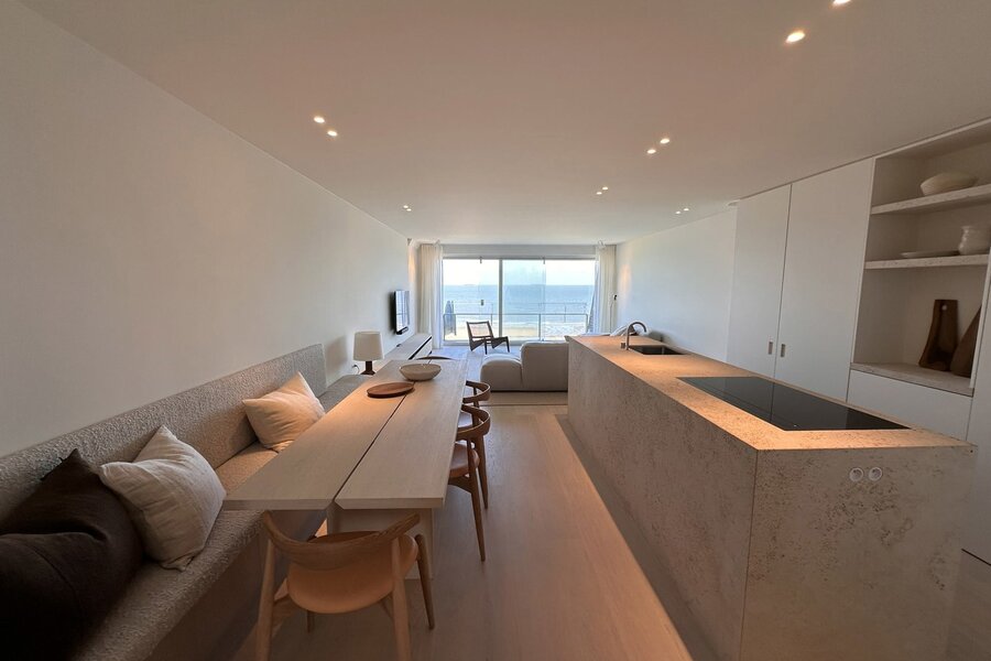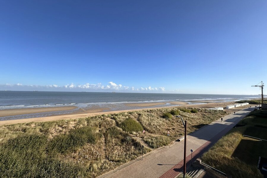 Beautifully renovated walk-through flat on the promenade in the Zoute, with frontal sea views and the dunes.