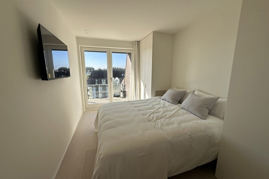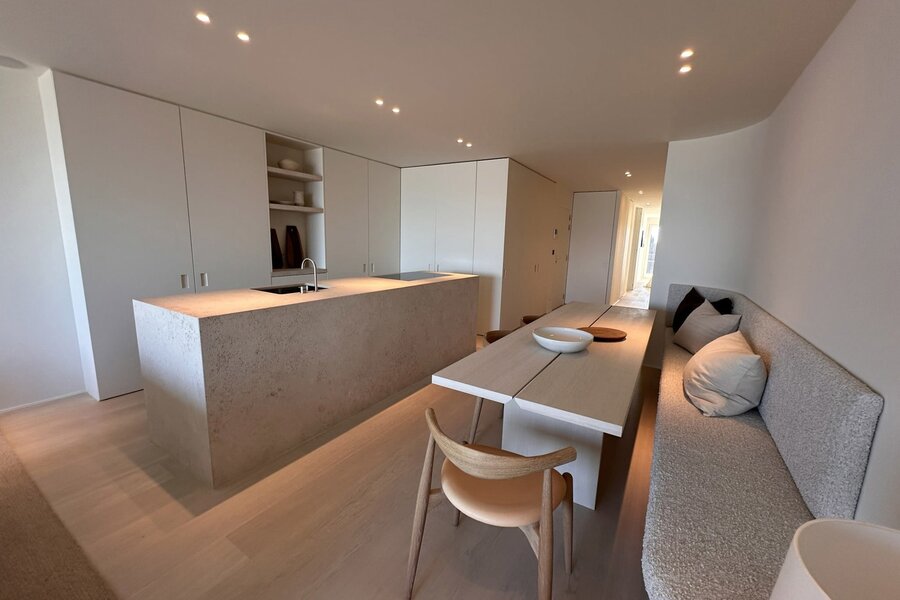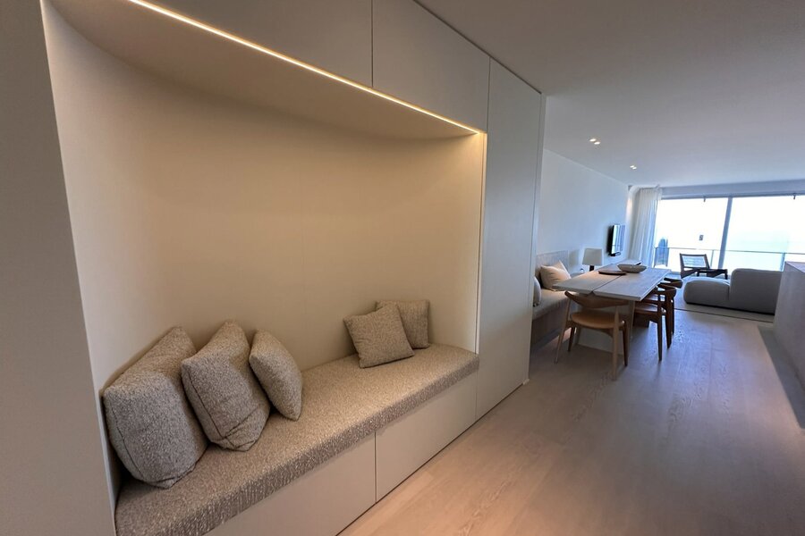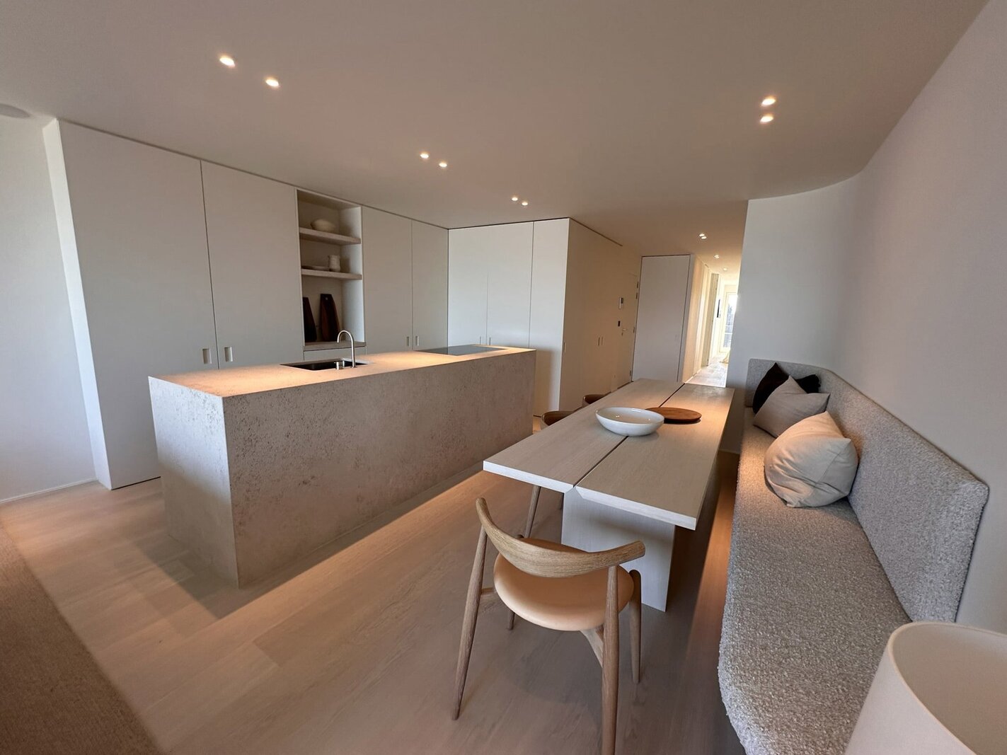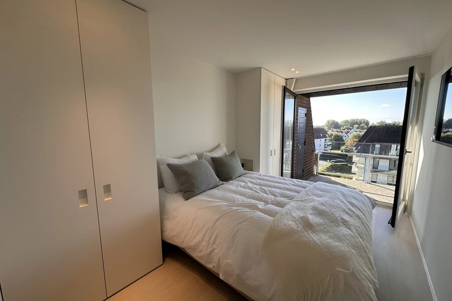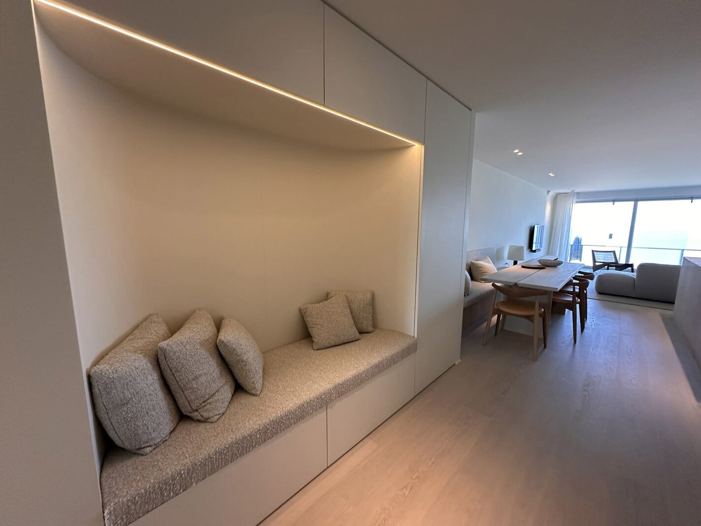 Beautifully renovated walk-through flat on the promenade in the Zoute, with frontal sea views and the dunes.