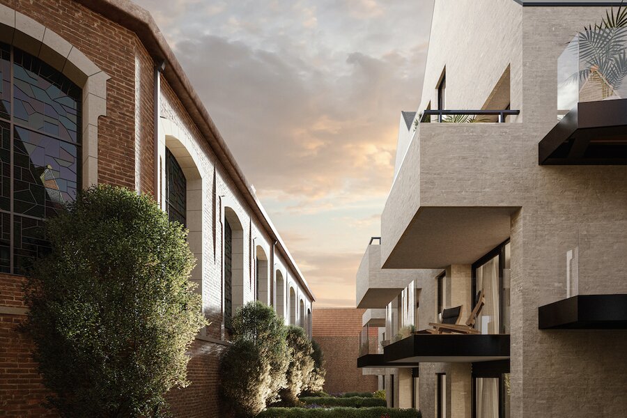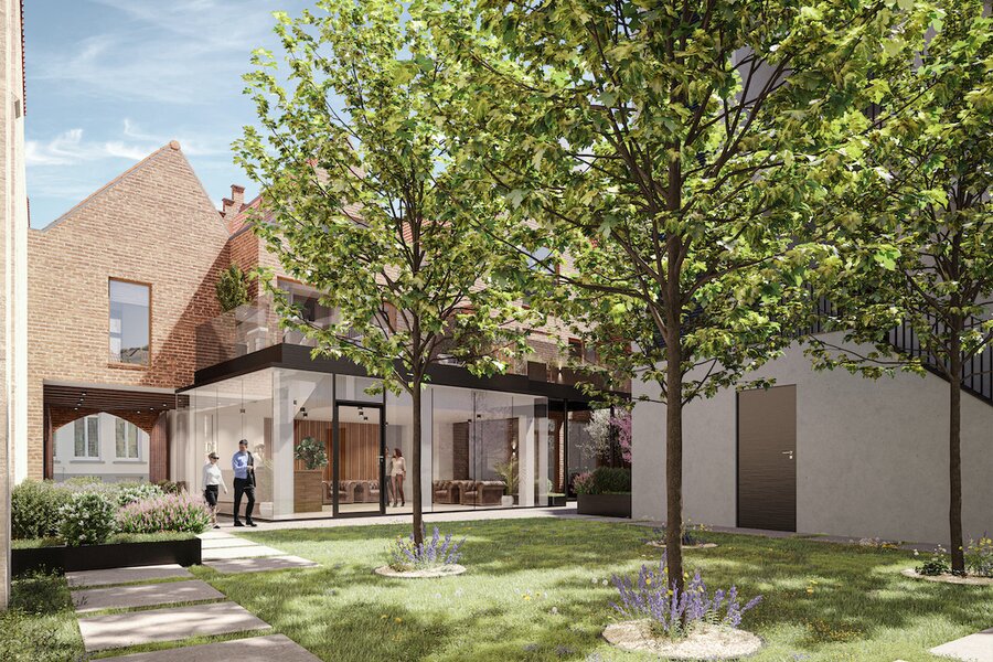 Het project De Gilde' is een bijzonder geslaagde combinatie van knap gerenoveerd erfgoed en weldoordachte nieuwbouw, dit alles op een unieke historische site, met wortels tot in de 13de eeuw. De ligging is bijzonder, centraler kan je wellicht niet wonen, vlakbij alles wat leeft en beweegt, Markt, Simon Stevinplein, Dijver en alle winkelstraten om de hoek. Toch ver genoeg van de drukte, in alle rust, een gevoel dat nog versterkt wordt door de standingvolle tuin van de site, die in Franse stijl zal aangelegd worden, palend aan de 17e eeuwse Karthuizerinnenkapel.