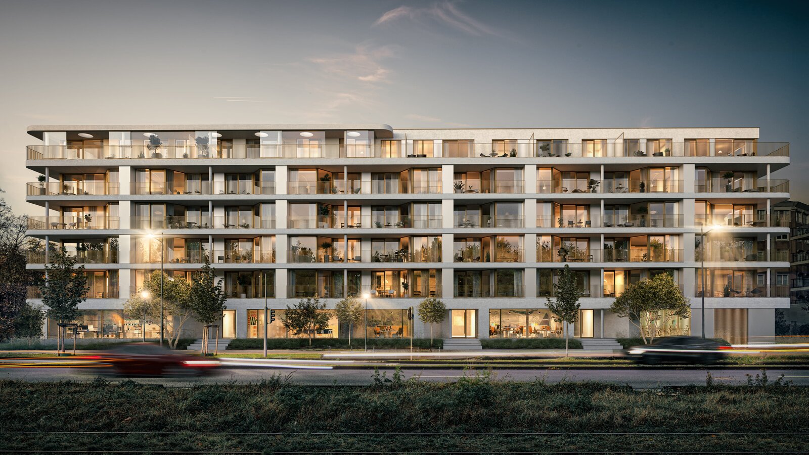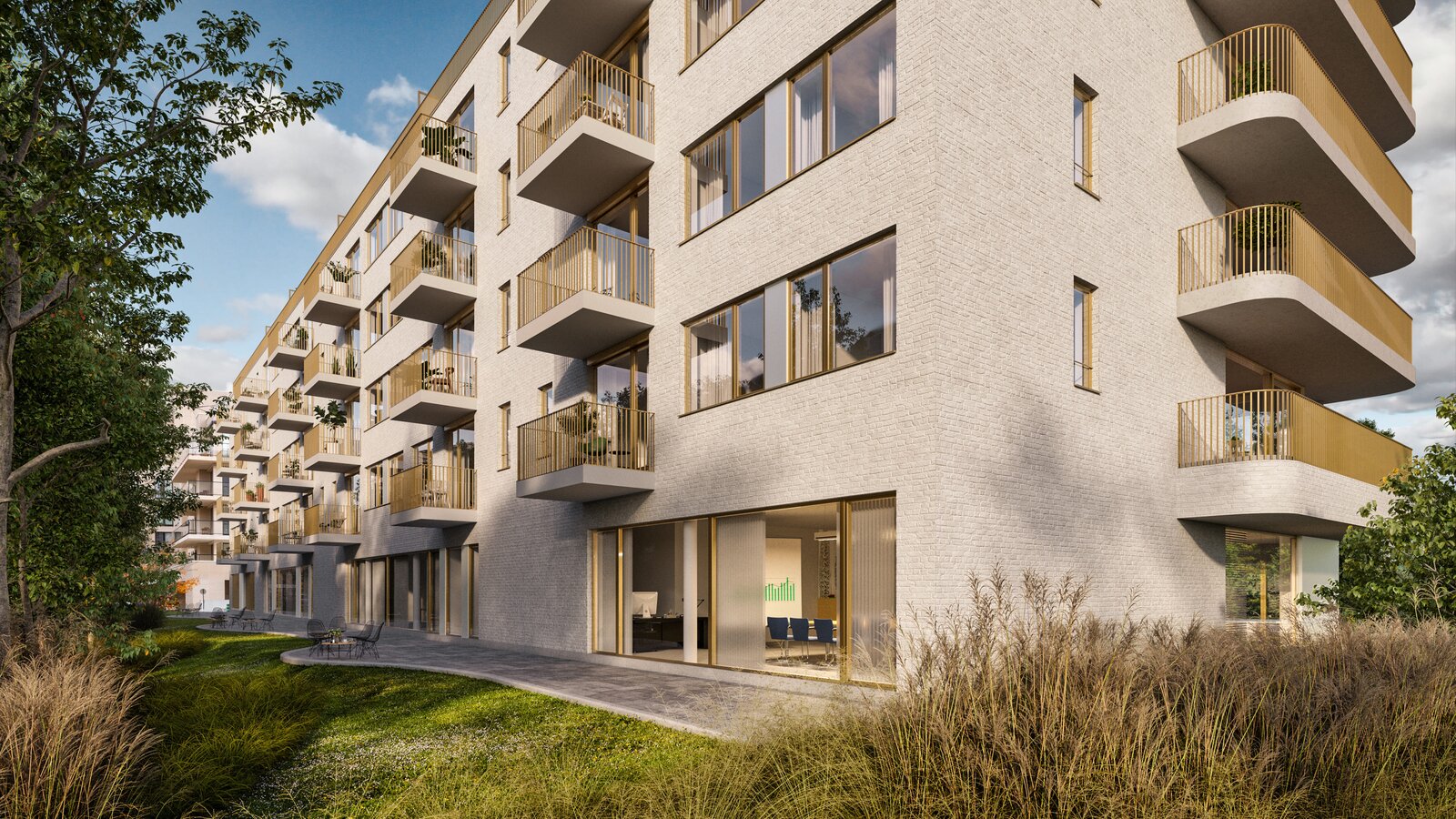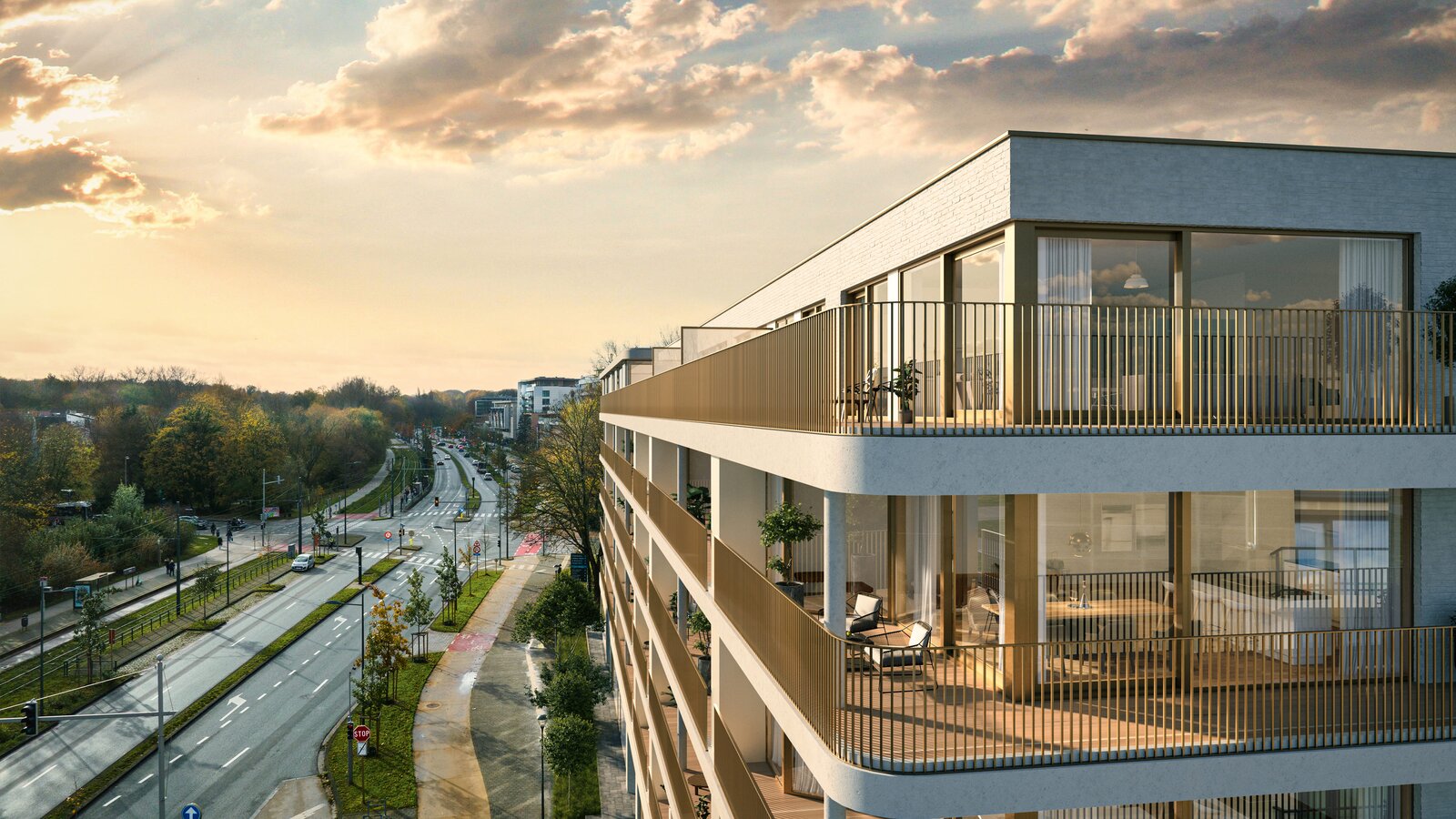 Part of the Woluxe project, this apartment meets the strictest energy standards and has been built with a strong focus on sustainability. The façades of this prestigious project combine durable materials, light tones, and elegance, with a harmonious blend of concrete, white bricks, and anodized bronze aluminum elements.