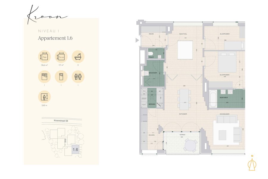In het stijlvolle nieuwbouwproject Kroon in Lennik biedt Unicas dit lichtrijke appartement aan, ontworpen door architect Jo Taillieu. Met een woonoppervlakte van 118 m² en een slimme indeling biedt dit appartement comfort en rust op een toplocatie in het Pajottenland. Het doordachte tuinontwerp van landschapsarchitect Jan Minne versterkt het unieke karakter van het project.