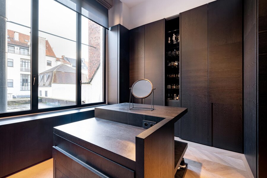 Located near 't Zuid and the idyllic Botanic Sanctuary, you will find this luxurious mansion with elevator, indoor swimming pool, fitness, sauna and garden. The habitable surface is ± 700m². Total high-end renovation in 2012 by the Antwerp design agency Co.Studio.