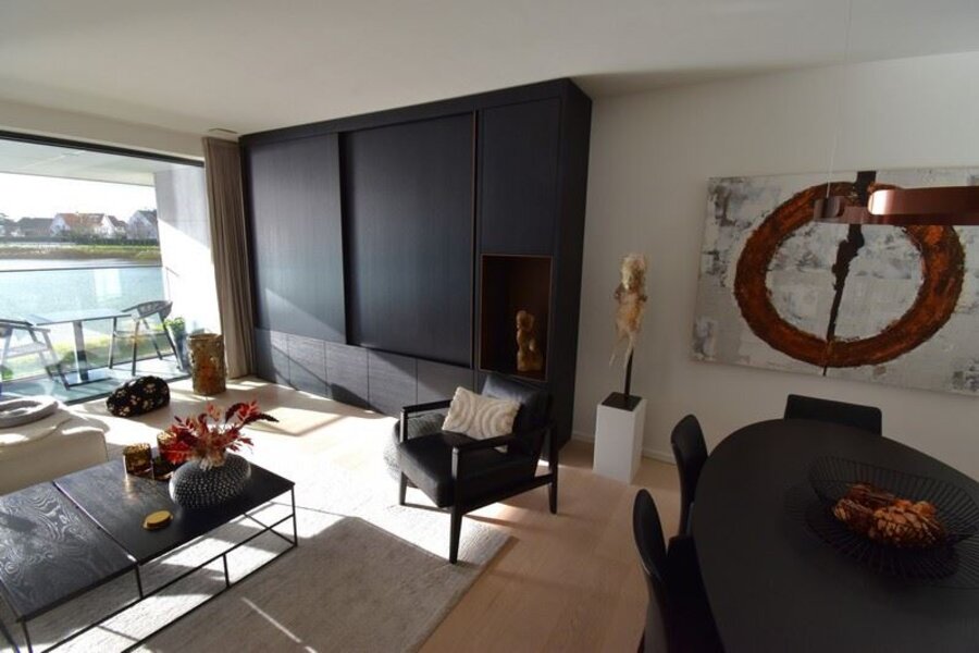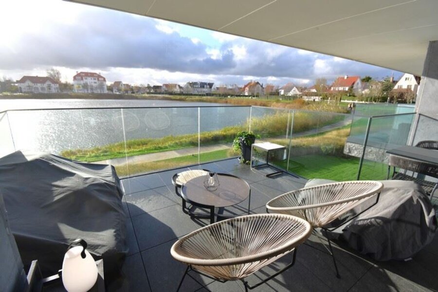 Schitterend appartement met frontaal meerzicht . Ruim leefterras naar het zuiden gericht . Luxueuze afwerking met zeer veel ingemaakte kasten en opbergruimte . Genieten van het zonnig , panoramisch zicht op het rustgevend Zegemeer !