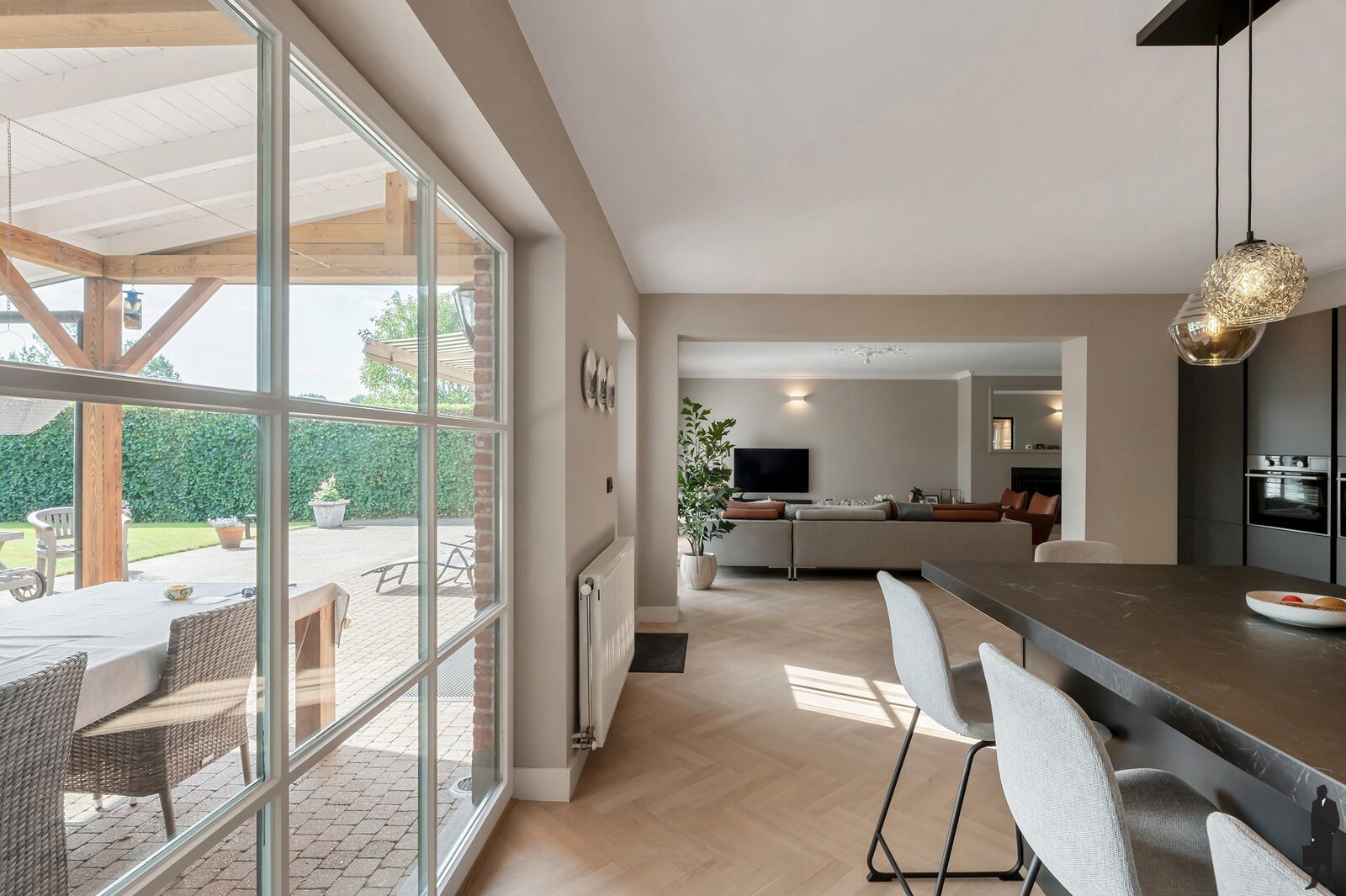 In een rustige en groene villawijk in Hoogstraten vinden we deze stijlvolle en instapklare villa op een prachtig perceel van 1.110 m². De woning combineert landelijke charme met strakke, moderne accenten en biedt een woonoppervlakte van ca. 300 m².