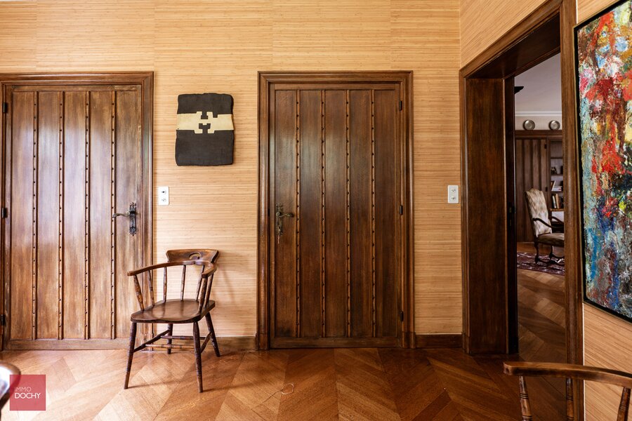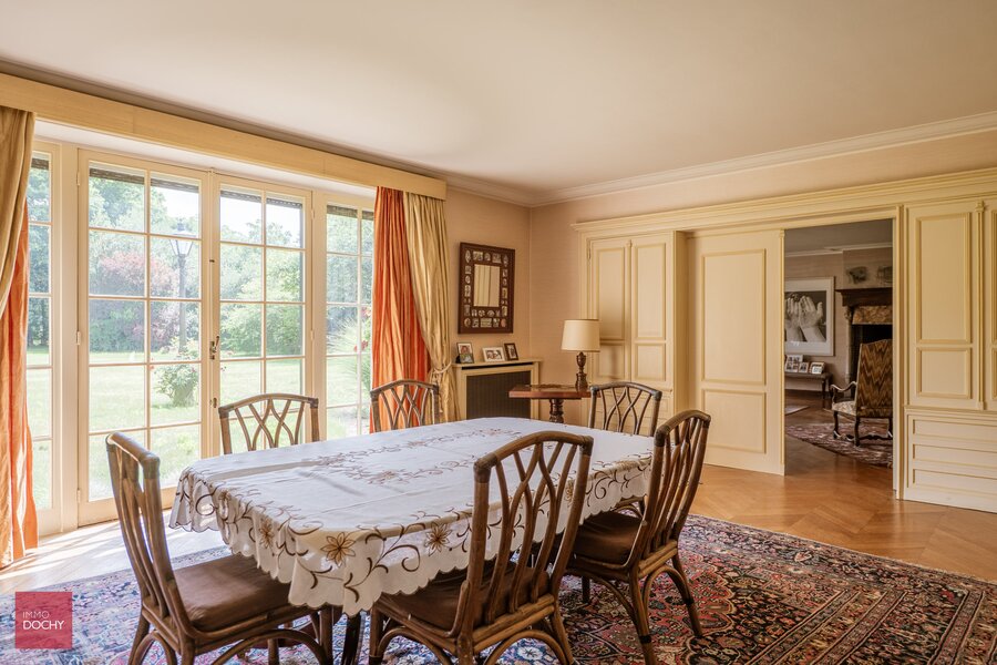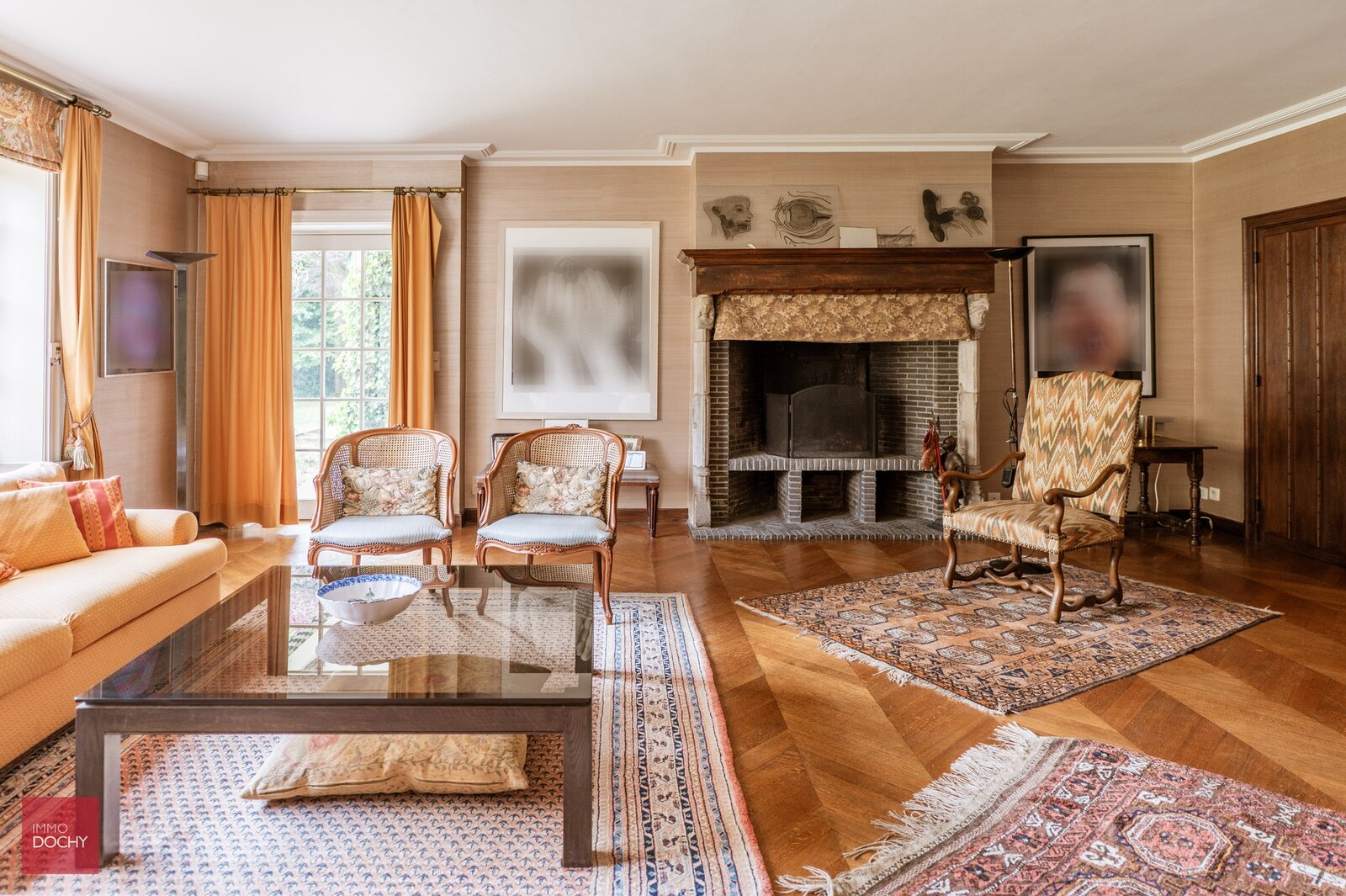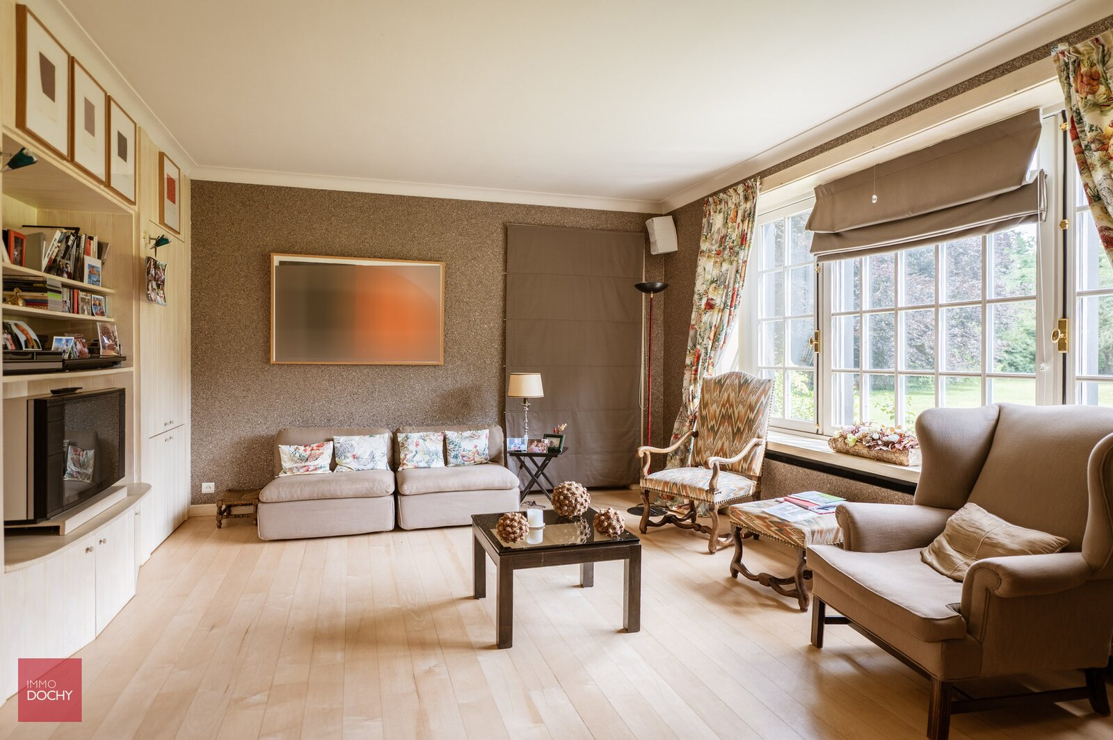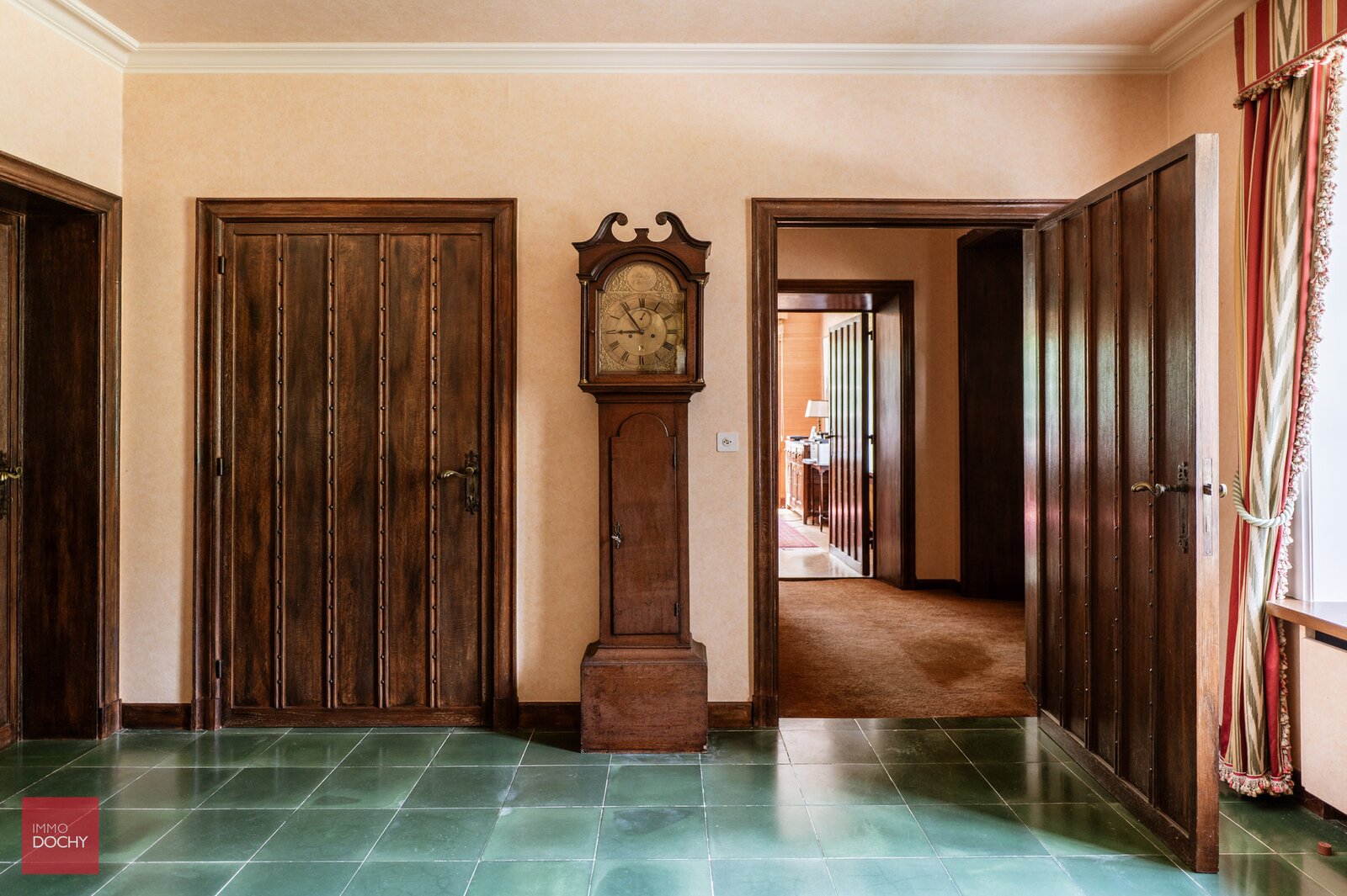 Villa gelegen op perceel van +/- 9.600m², bestaande uit inkomhal, bureel, living, eetplaats, keuken, bijkeuken (wasplaats), dagelijkse woonkamer (tv-kamer), dubbele garage, 5 slaapkamers, 3 badkamers, dressing, ruime zolder met vaste trap, kelders, terrassen, berging en zuidgerichte tuin. Mogelijkheid +/- 2ha landbouwgrond bij te kopen.