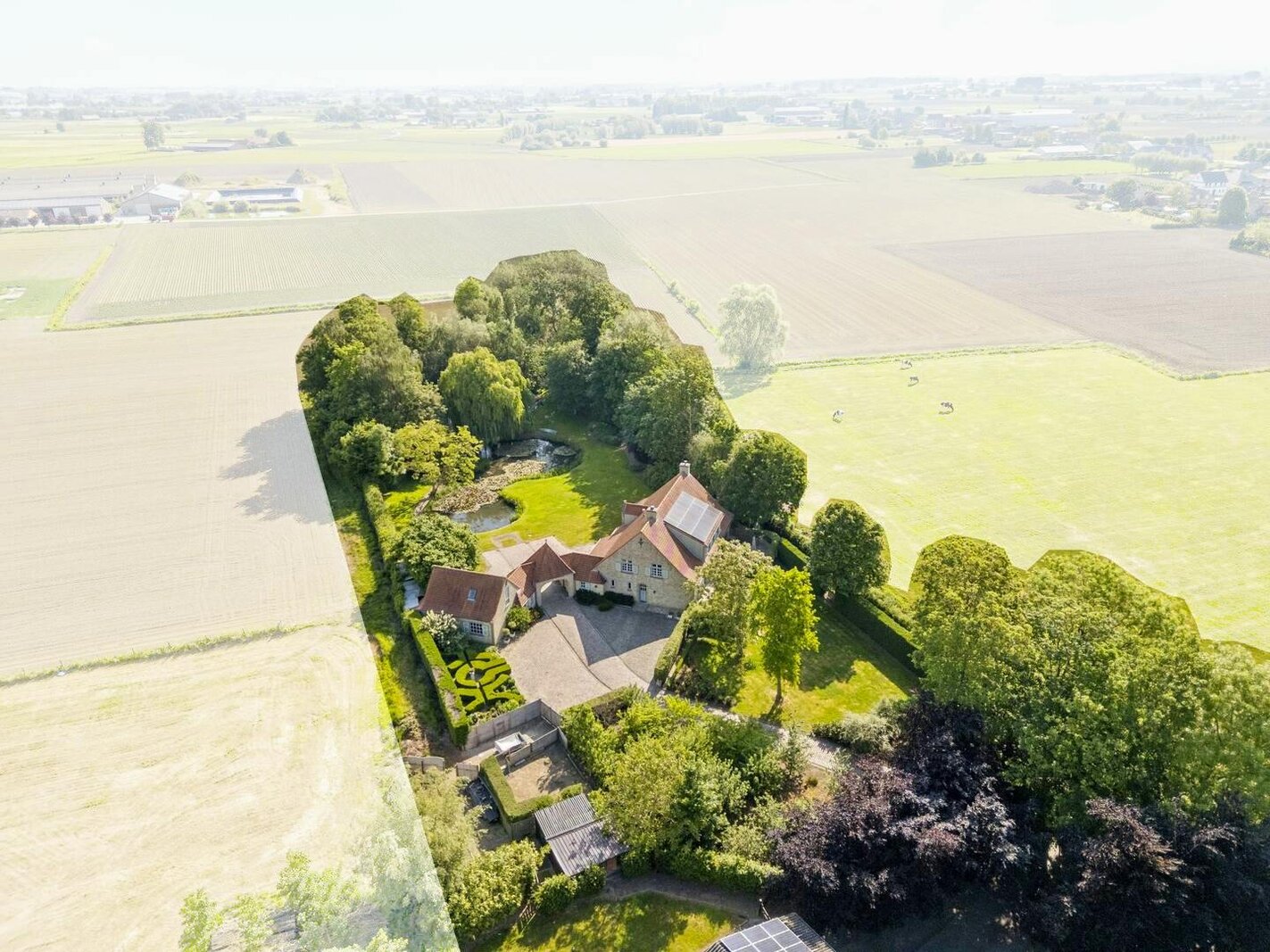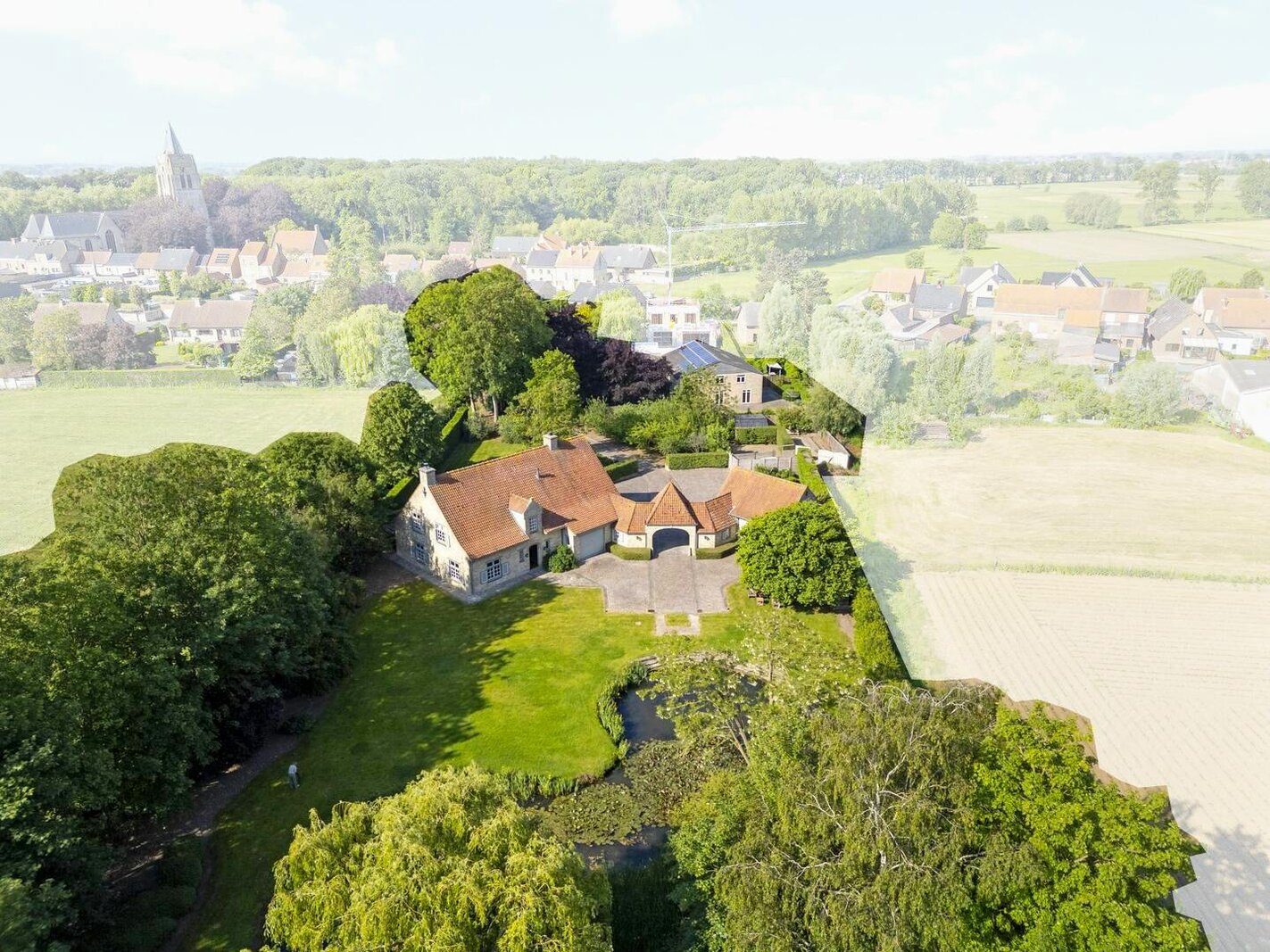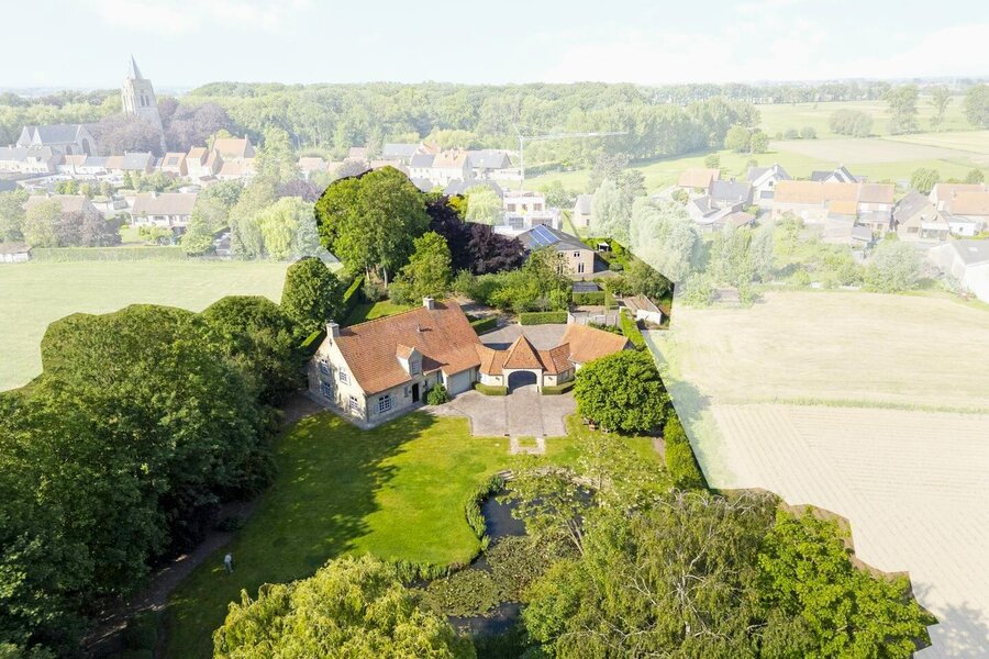 Stately and unique home with pond and outbuilding on more than 8,000 m² of land in Pinksterbloemstraat 11 in Merkem.