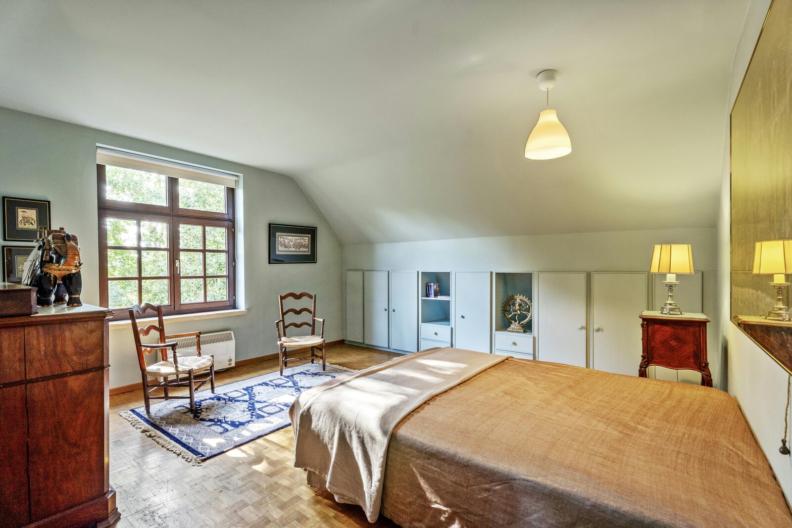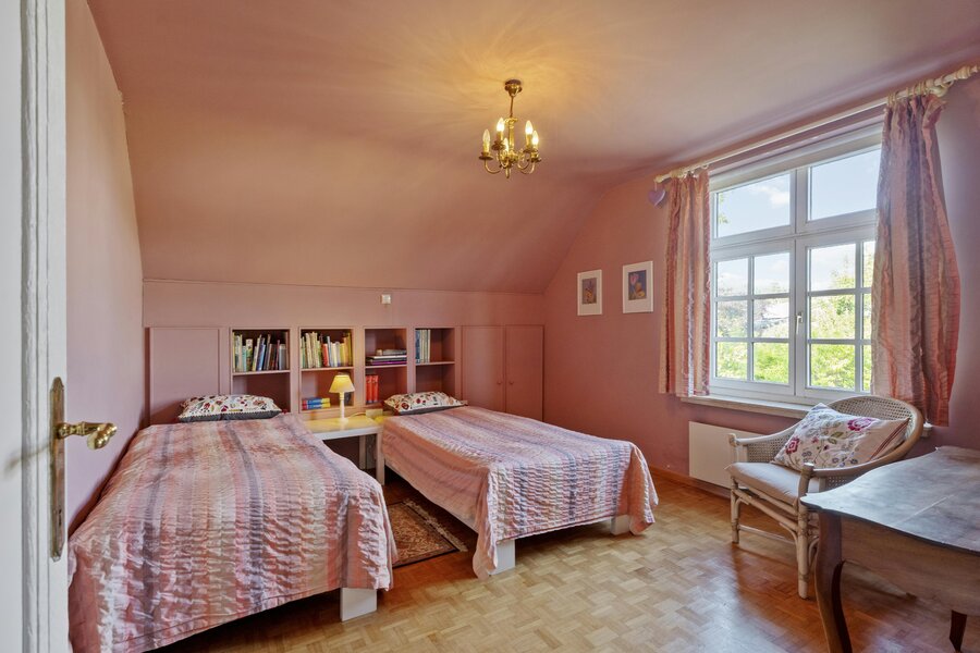 Floor +1:5 very spacious bedrooms with high-quality parquet flooring - Linen room and a well-kept and spacious bathroom with a double sink, bath and toilet.