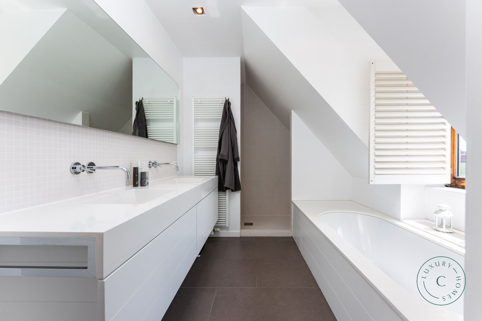 De polyvalente bijgebouwen bieden tal van mogelijkheden, als hobbyruimte, gym, gastenverblijf of kantoor. Ook op technologisch vlak schiet deze woning niets te kort, met onder meer een geavanceerd domoticasysteem, alarminstallatie, zonnepanelen en een laadpaal voor elektrische wagens.