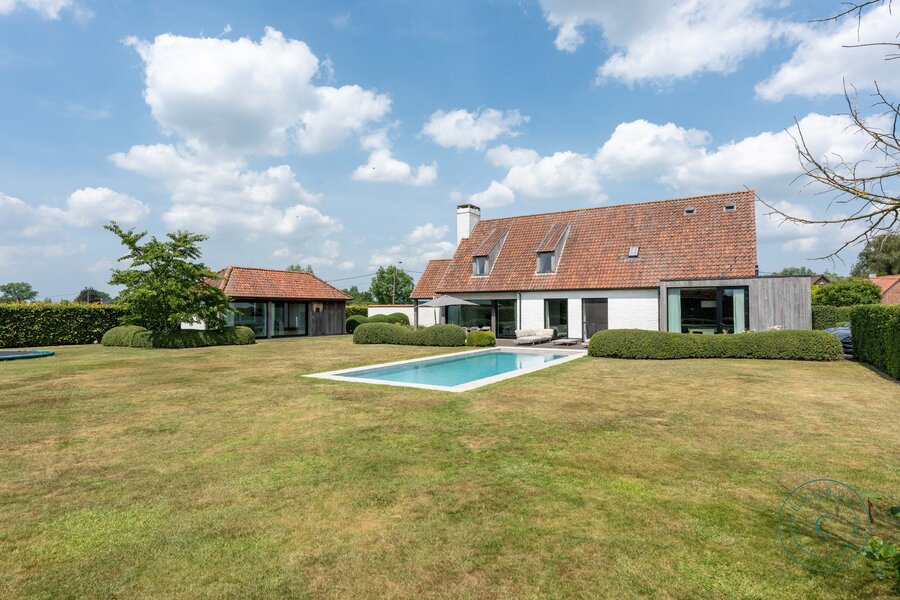 Op de grens met Hertsberge in een rustige en groene omgeving bevindt zich deze prachtige villa met zwembad en bijgebouwen, een perfecte combinatie van verfijnde architectuur, comfort en privacy. Gelegen op een royaal zuidgericht perceel van 3.448 m², geniet deze woning van een open, groen uitzicht en maximale discretie.