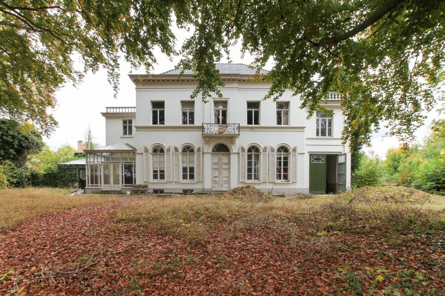 Gelegen in een rustige en groene omgeving in Oudegem, deelgemeente van Dendermonde, biedt dit uitzonderlijke landhuis een zeldzame kans voor liefhebbers van erfgoed, charme en renovatiepotentieel. Het pand, gekend als het Landhuis Van Mossevelde, is een beschermd monument met een rijke geschiedenis, opgetrokken circa 1832 in neoclassicistische stijl. Het pand heeft een herkenbare symmetrische voorgevel van vijf traveeën met centraal risaliet, een imposante inkomhal, en verschillende authentieke salons voorzien van hoge plafonds, sierlijsten, originele parketvloeren, marmeren schouwen en dubbele deuren. Achteraan bevinden zich twee haaks opgestelde vleugels rond een charmante binnenkoer, met aansluitende bijgebouwen die dienst deden als koetshuis en dienstvertrekken. Een prachtige houten trap leidt naar de bovenverdieping met diverse kamers en zolderruimte. De tuin ademt rust uit en is omgeven door een smeedijzeren hekwerk met statige toegangspoort. Het terrein volgt het traditionele “entre cour et jardin”-concept: een representatieve voortuin, een binnenkoer en een besloten achtertuin met waardevol bomenbestand. Hoewel het pand toe is aan een renovatie, biedt het dankzij zijn structuur en oppervlakte een waaier aan mogelijkheden: luxueuze eengezinswoning, kangoeroewonen / meergezinswoning, praktijkruimte of kantoor, Boutique B&B (mits stedenbouwkundige toelating). Voorstudies, opmetingen en een gedetailleerde kostenraming voor de renovatie zijn reeds uitgevoerd en beschikbaar op aanvraag.