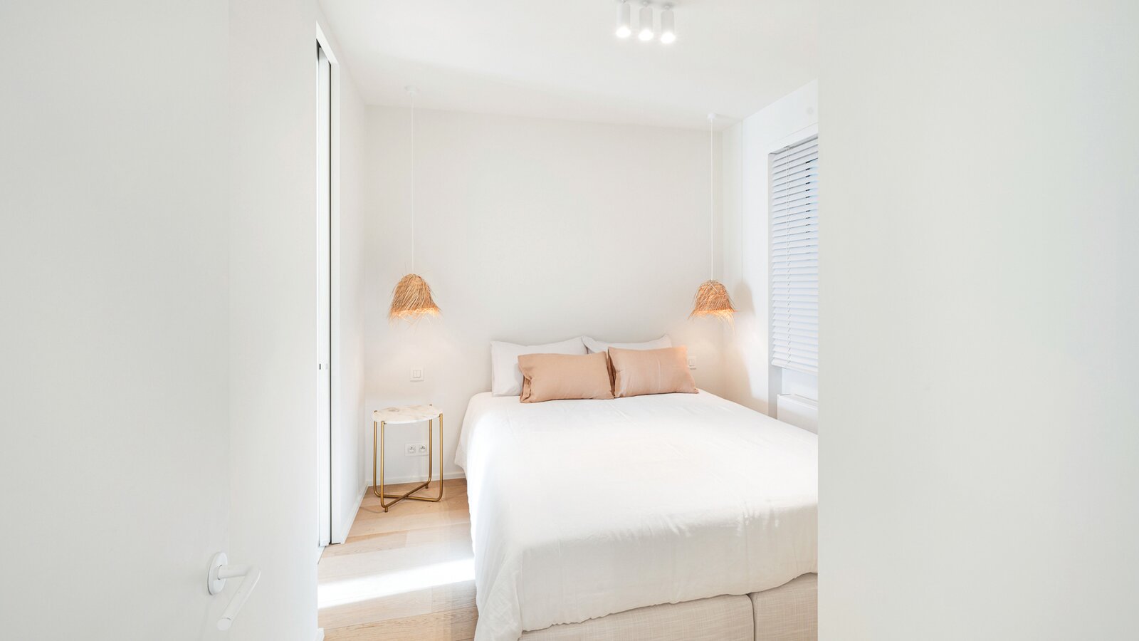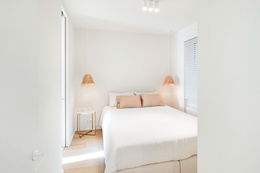Layout: Spacious and bright living room with dining area, fully equipped open kitchen, 2 large bedrooms with shared shower room. Master with beautiful bathroom. Terrace in the back.