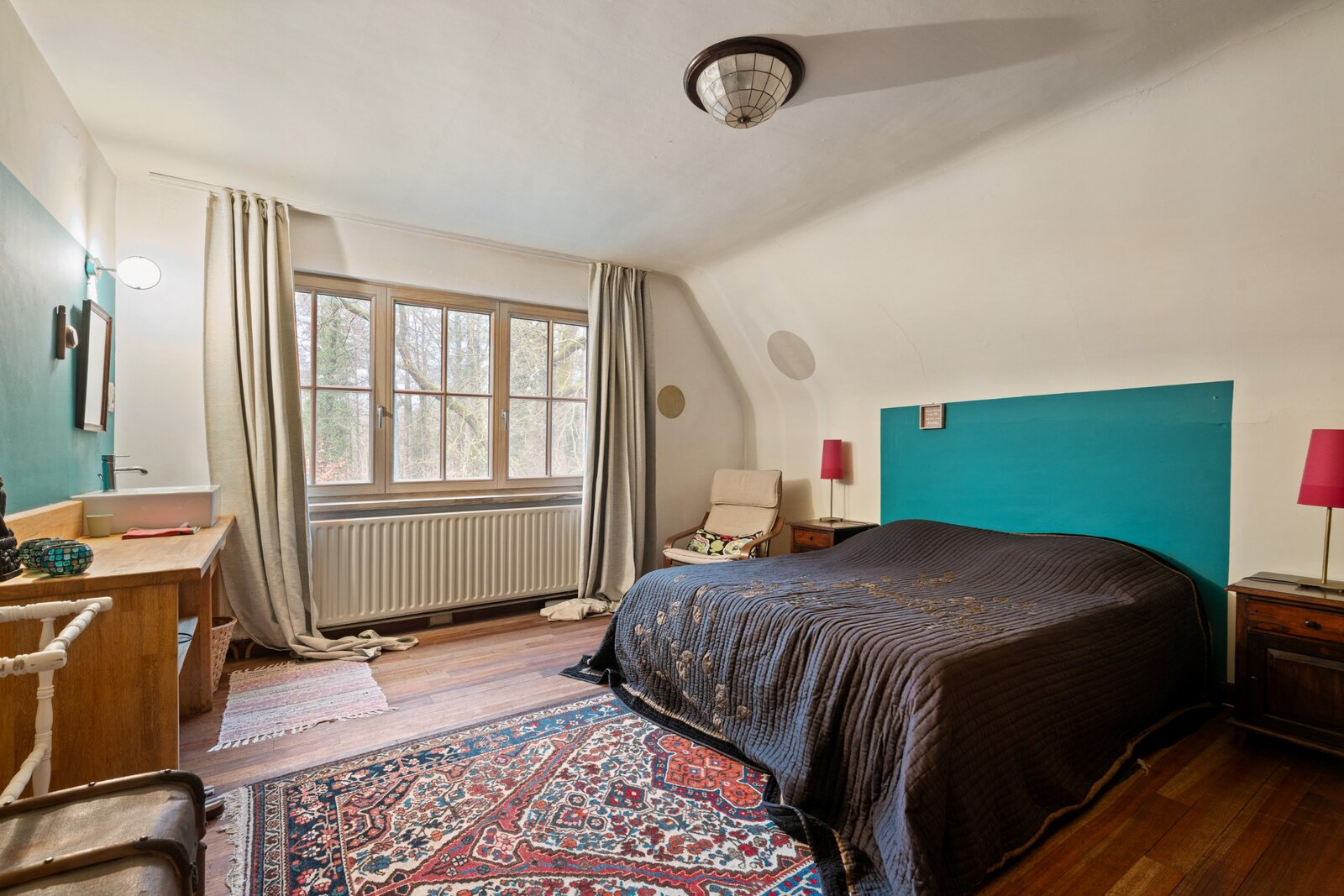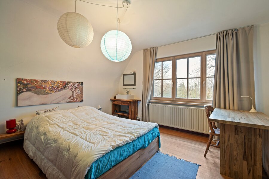 De woning beschikt over vijf volwaardige slaapkamers en twee badkamers, ideaal voor een groot gezin, co-housing of wie graag gasten ontvangt. Eén slaapkamer met aansluitende badkamer bevindt zich op de gelijkvloerse verdieping waardoor het perfect mogelijk is volledig gelijkvloers te wonen.