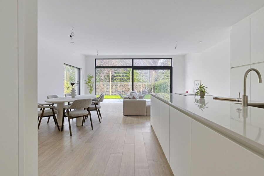 Upon entering, you are welcomed into a bright living space with an open view of the beautifully landscaped garden. The stylish, open kitchen is equipped with high-quality built-in appliances and is the beating heart of the home. In addition, there are three functional storage rooms, a guest toilet and a separate office space: perfect for working from home or as a hobby room.