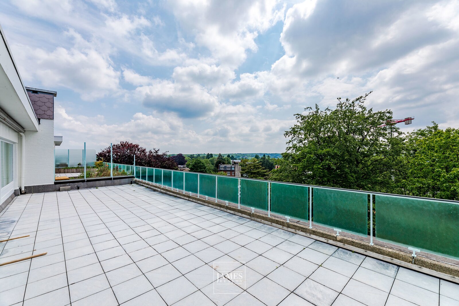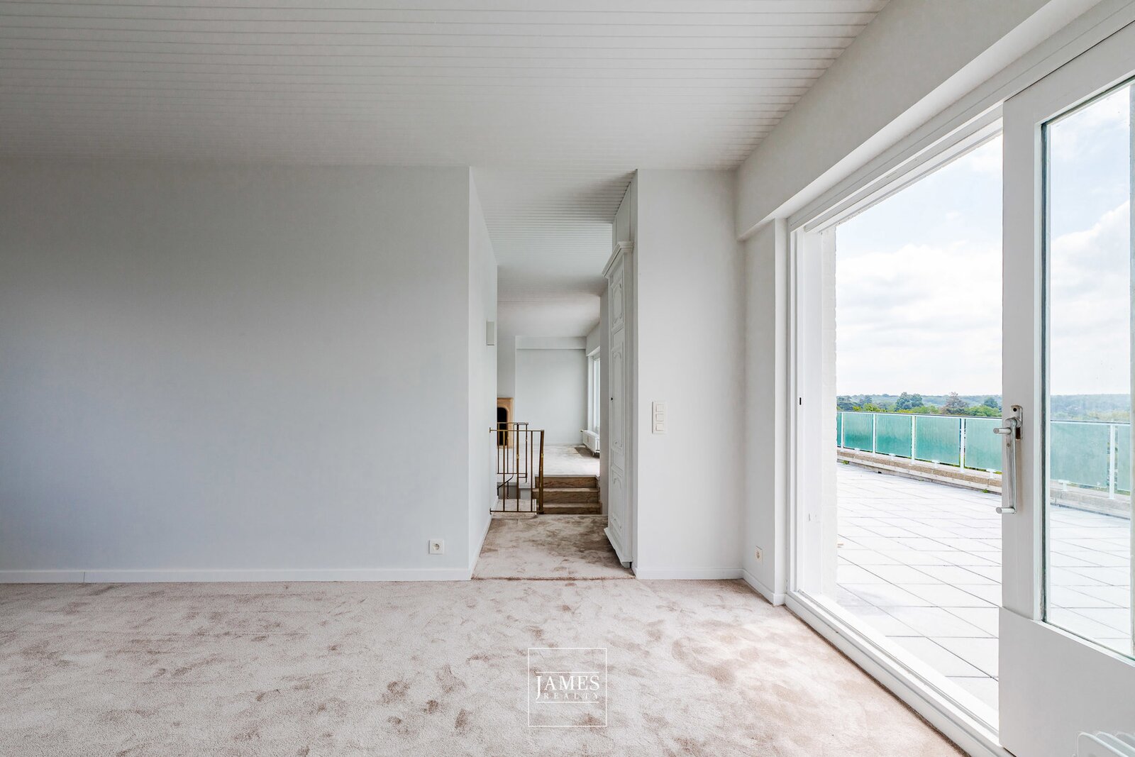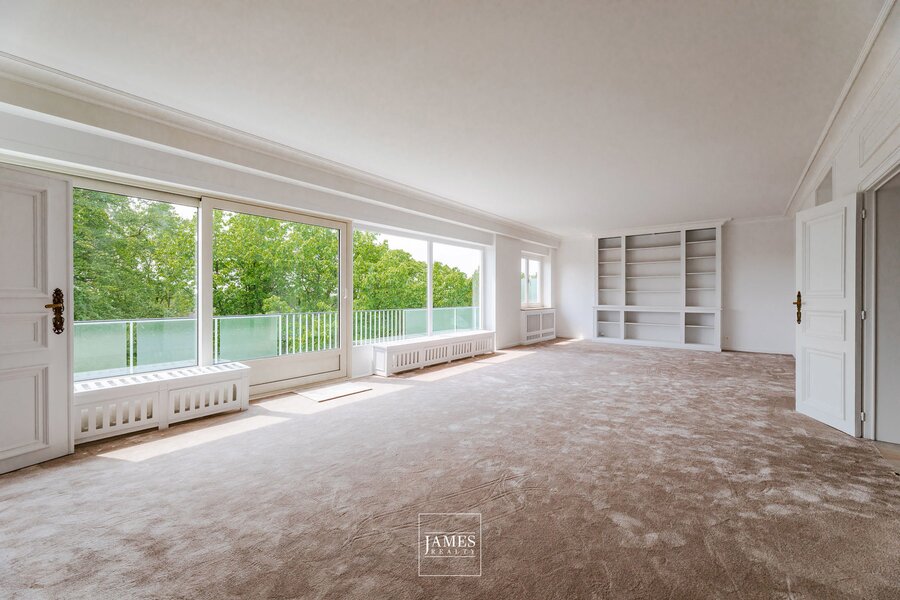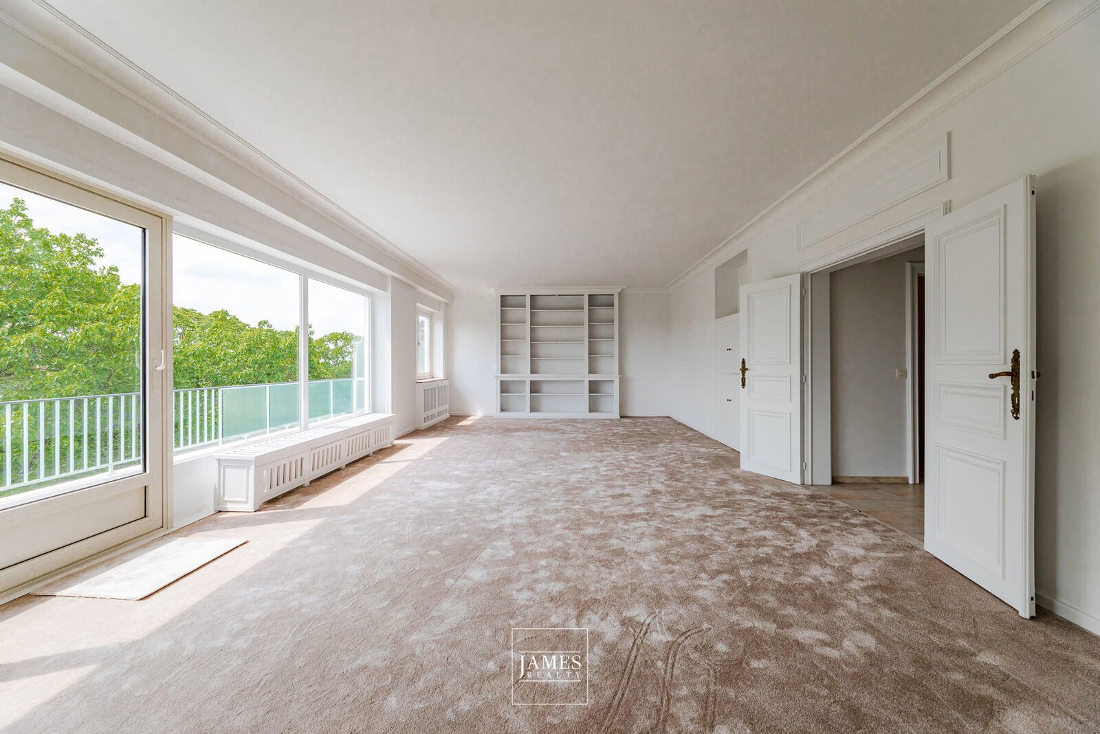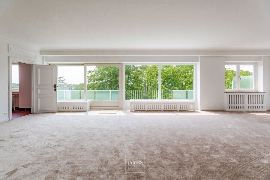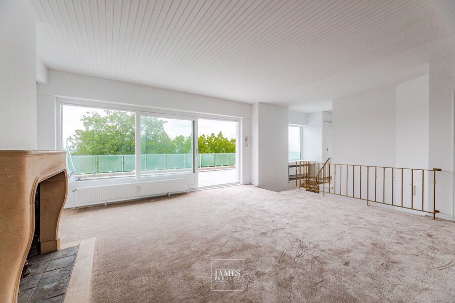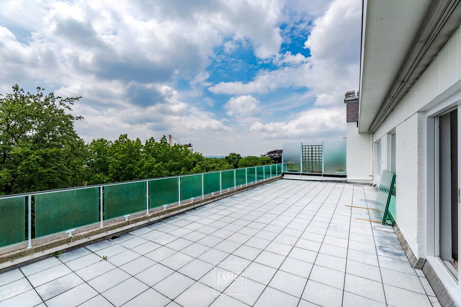 Offering a unique view over Uccle from its extraordinary terraces (over 90m2), this apartment for renovation has a surface area of 287m2. The building, designed by architect Stanislas Jasinski, has retained all its character features, from the facades to the entrance halls and common areas. The duplex apartment in the office-TV lounge section (or master suite) offers spacious accommodation, large bay windows opening onto the terrace, a large kitchen and the possibility of four en suite bedrooms (after renovation, currently four bedrooms and two shower rooms). It is also possible to acquire the adjoining apartment (on the 8th floor) with its 70m2 terrace to make an apartment of over 371m2!