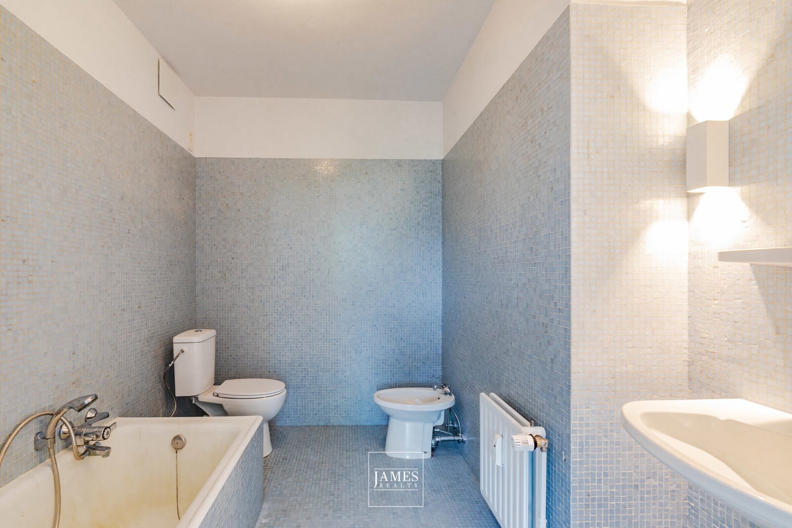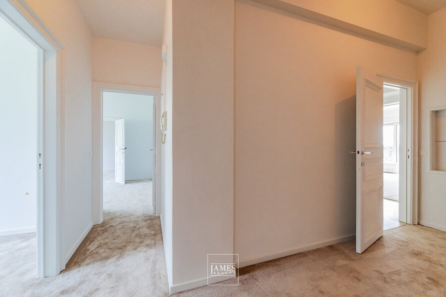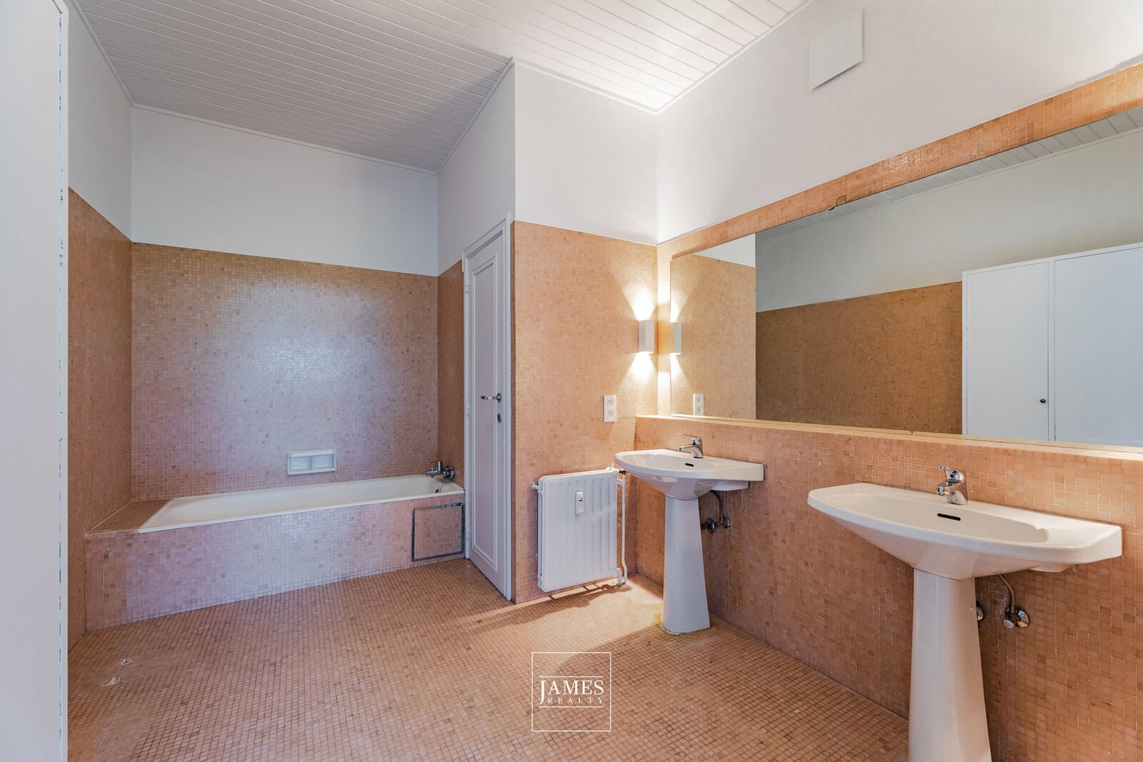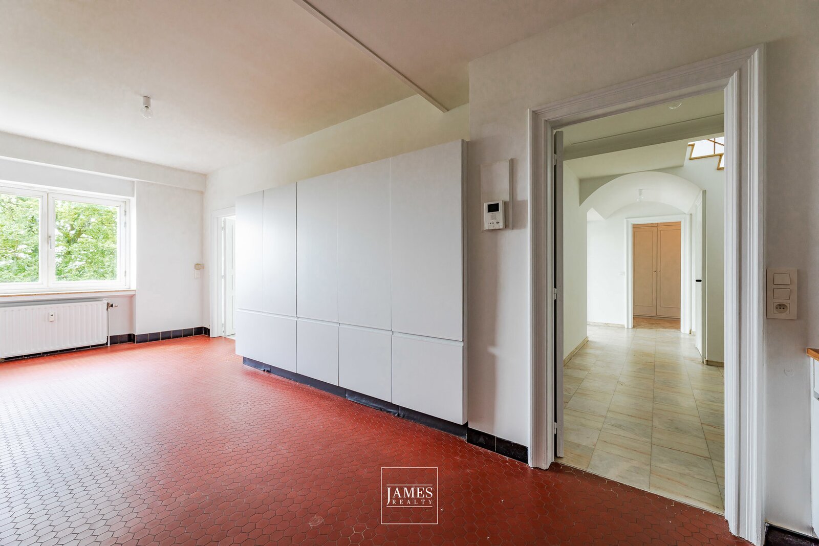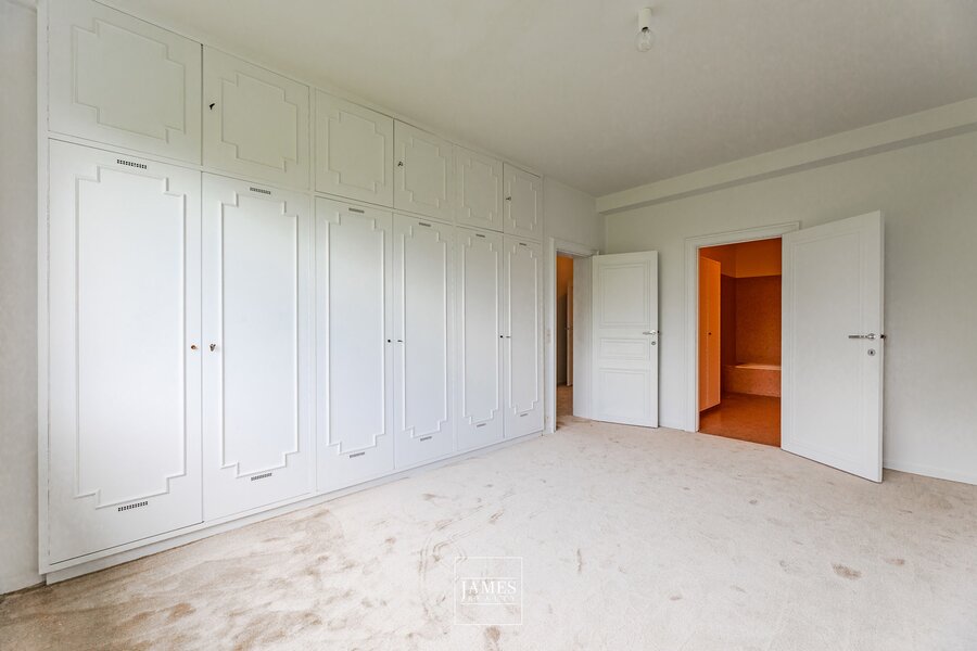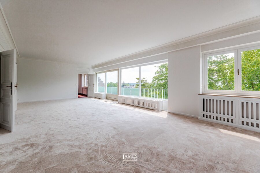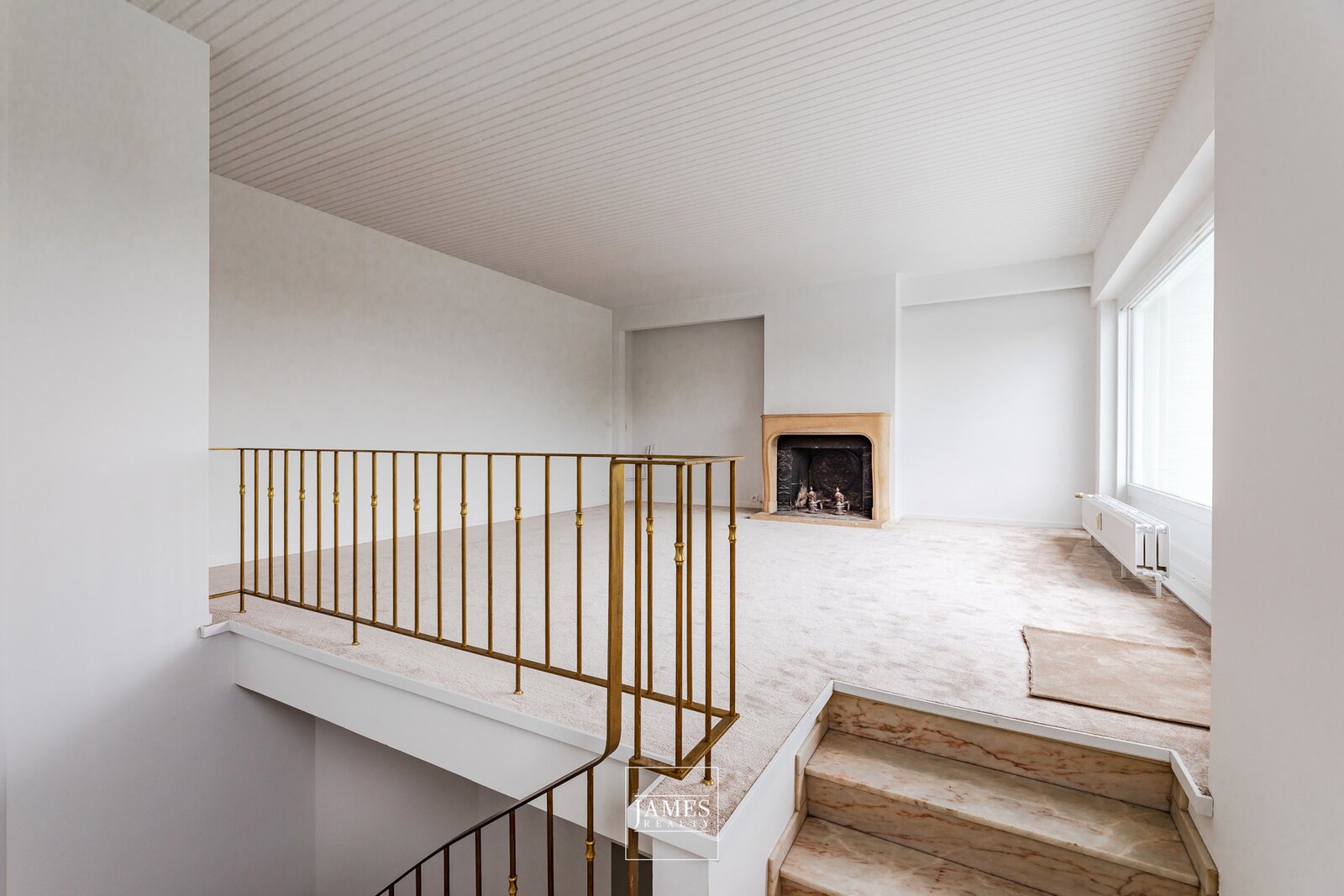 Offering a unique view over Uccle from its extraordinary terraces (over 90m2), this apartment for renovation has a surface area of 287m2. The building, designed by architect Stanislas Jasinski, has retained all its character features, from the facades to the entrance halls and common areas. The duplex apartment in the office-TV lounge section (or master suite) offers spacious accommodation, large bay windows opening onto the terrace, a large kitchen and the possibility of four en suite bedrooms (after renovation, currently four bedrooms and two shower rooms). It is also possible to acquire the adjoining apartment (on the 8th floor) with its 70m2 terrace to make an apartment of over 371m2!