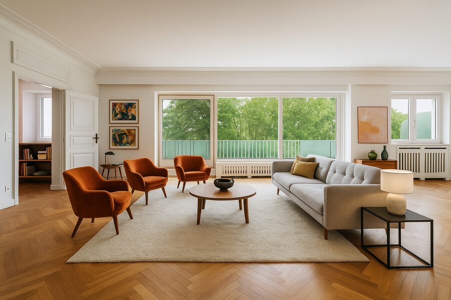 A double parking space and an optional garage box complete this exceptional property, as do two cellars: for the discerning architecture enthusiast.