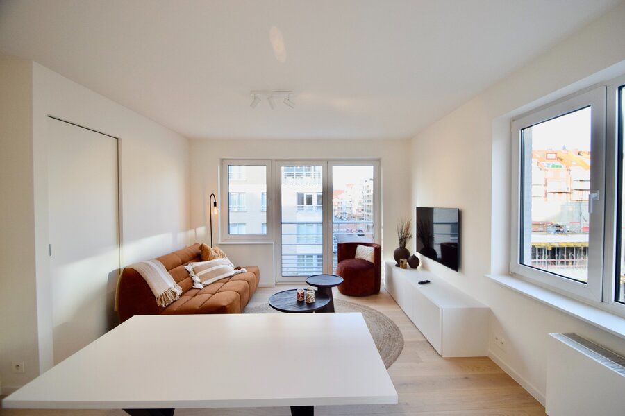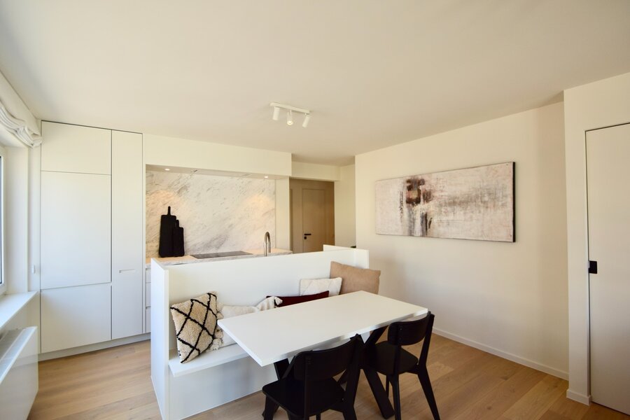 Lichtrijk gemeubeld hoekappartement gelegen in het centrum van Knokke op wandelafstand van de Zeedijk.