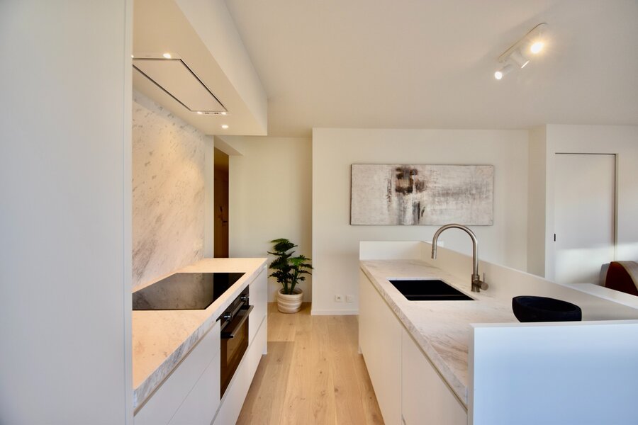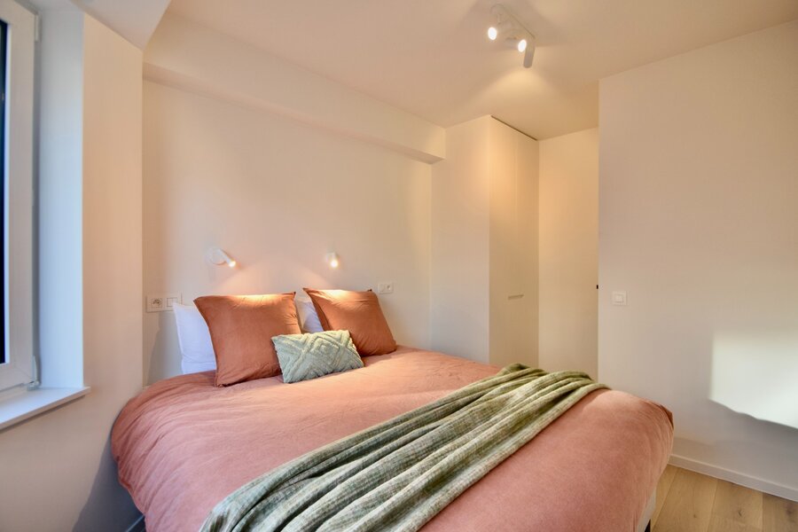 Volledig gerenoveerd appartement gelegen in het centrum van Knokke op wandelafstand van de Zeedijk en het Rubensplein. Indeling: Inkom met vestiaire en gastentoilet. Aangename lichtrijke woon- en eetkamer met open ingerichte keuken. Praktische berging. 1ste ruime slaapkamer met ingemaakte kasten. Douchekamer (dubbele lavabo - douche). 2de slaapkamer met stapelbedjes. Privatieve kelder in de residentie. Contacteer ons voor een plaatsbezoek in te plannen. Meubels inbegrepen.