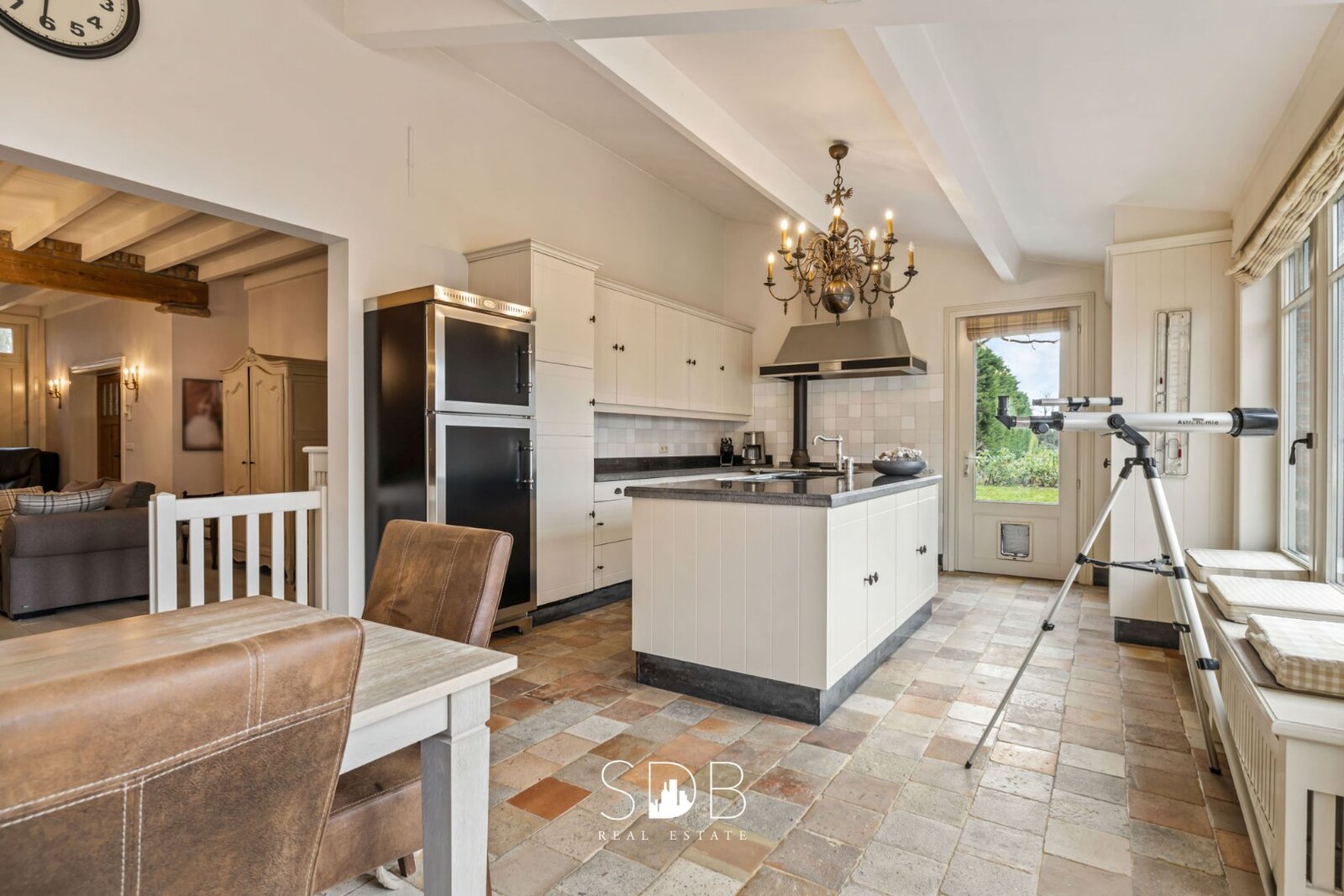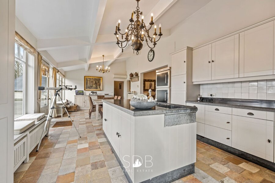 Riante Landelijke Keuken: Een tijdloze en gezellige keuken met keukeneiland en alle moderne faciliteiten.