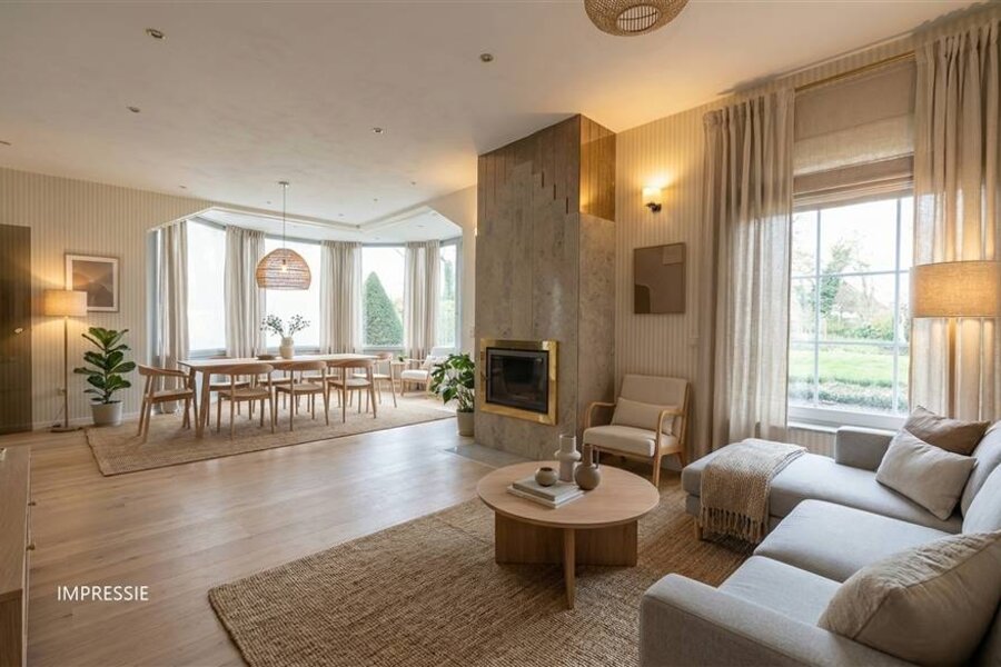 In een doodlopende straat bevindt zich deze goed onderhouden en tijdloze villa, omgeven door een uitgestrekte parktuin van ongeveer 41 are. De woning combineert een warme sfeer met royale leefruimtes en een mooi groen zicht. Zowel binnen als buiten geniet je hier van volledige privacy, rust en een hoogwaardige afwerking.