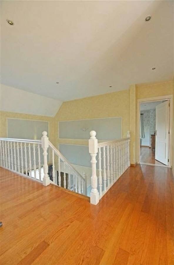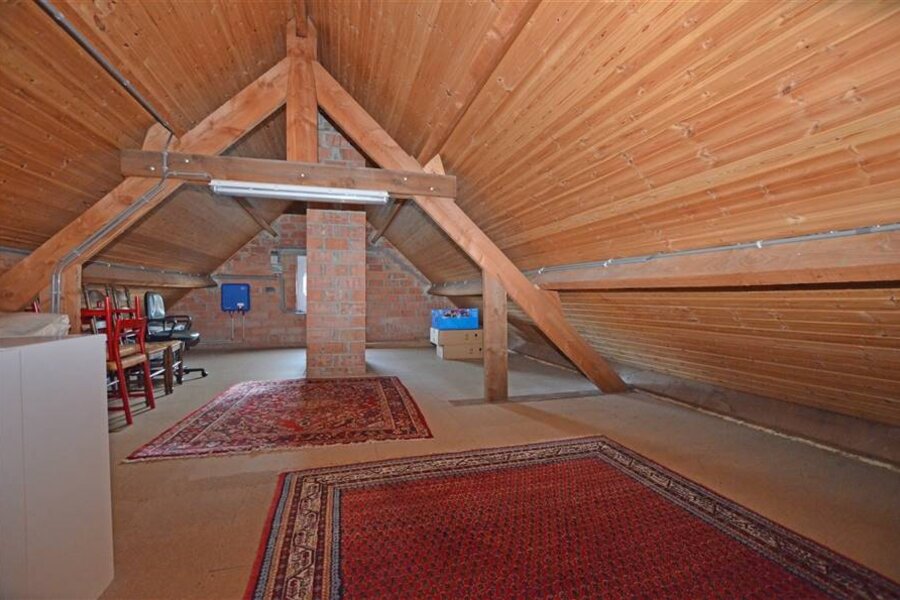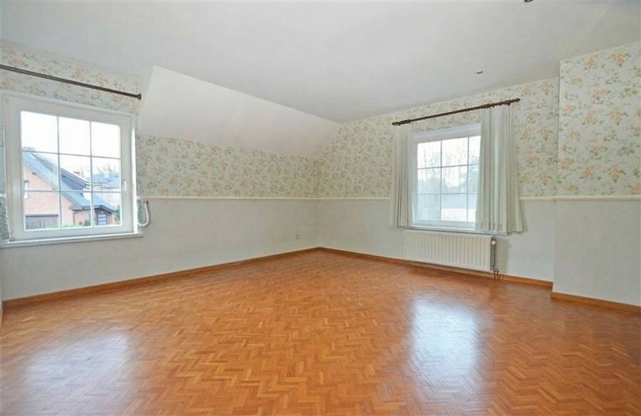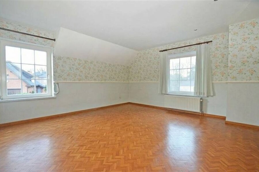 Op de verdieping leidt de overloop naar het mastergedeelte, uitgerust met een dressing en een eigen badkamer. Daarnaast zijn er twee ruime slaapkamers met inbouwkasten, een aparte douchekamer en een derde, kleinere slaapkamer, die directe toegang biedt tot de zolder. Deze zolder is volledig geïsoleerd en creëert bijkomende mogelijkheden voor extra ruimte of berging.