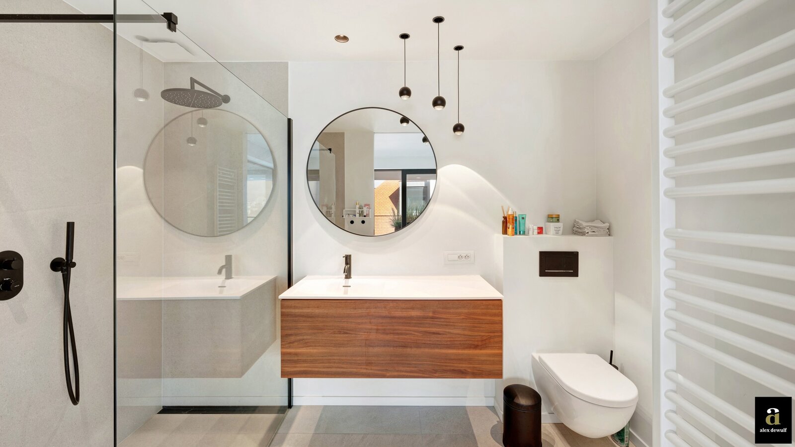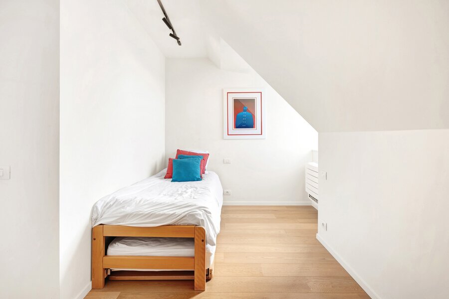 Bedrooms 1 and 2 are located on the west façade, offering views of the surrounding villas, and share a common shower room.