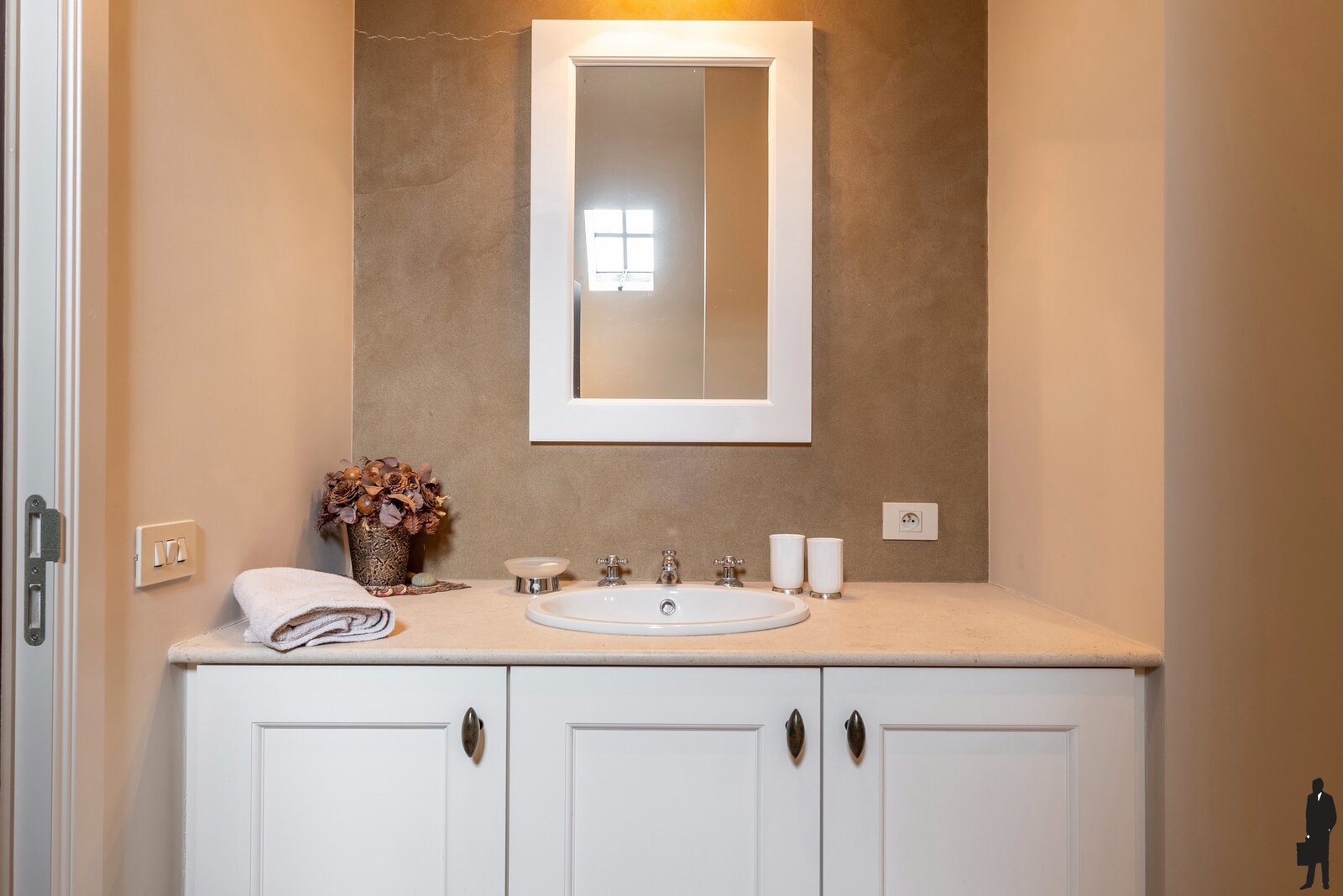 De twee andere slaapkamers delen een douchekamer met douche en lavabo. Een apart gastentoilet bevindt zich in de inkomhal.