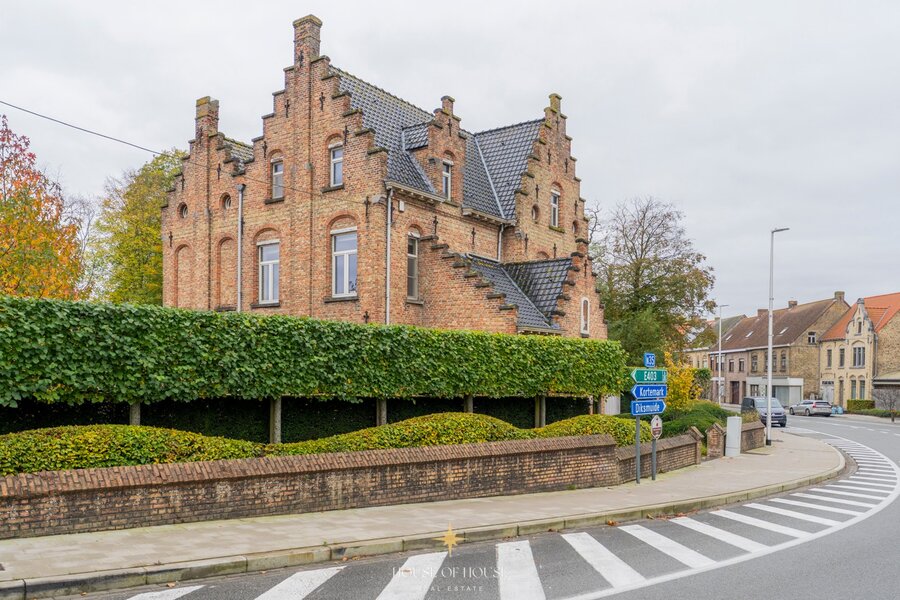 This unique rectory is located in the centre of Esen, a borough of Diksmuide. The building was designed in 1923 by the renowned architect Thierry Nolf and is a magnificent example of an eclectic wide house that exudes history, style and craftsmanship. It is one of the architect's last projects, which gives the property special historical and architectural value.