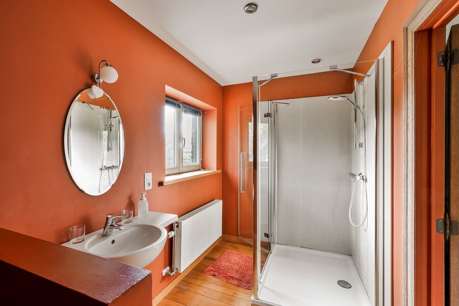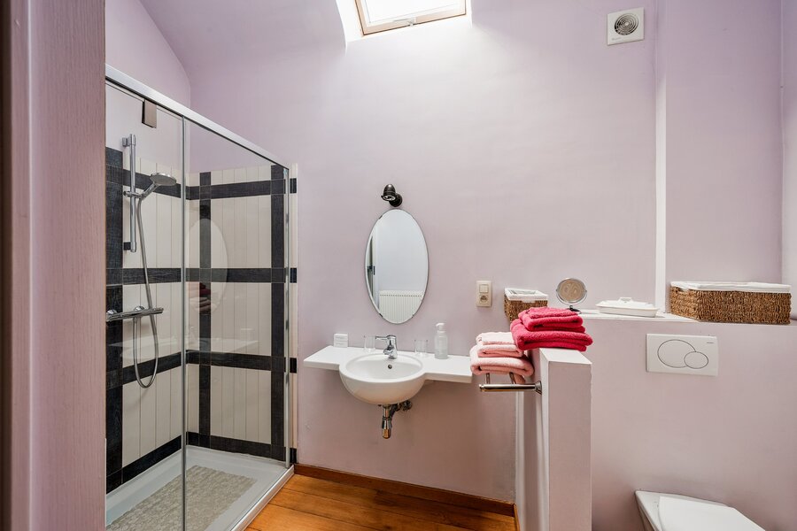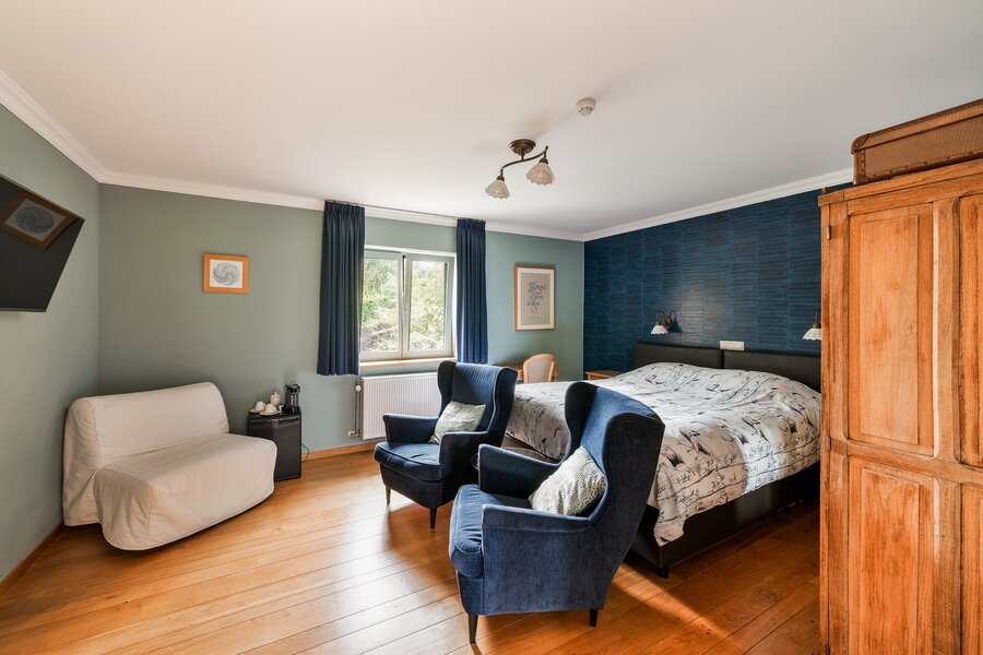 Vanuit deze gastenzone leidt een trap naar het gastenverblijf op de eerste verdieping. Hier bevinden zich vier comfortabele kamers, elk met een eigen ensuite badkamer. Op de tweede verdieping zijn er nog twee kamers, een aparte badkamer en een ruime polyvalente kamer die tal van mogelijkheden biedt, van extra slaapkamer tot hobbyruimte of bureau.