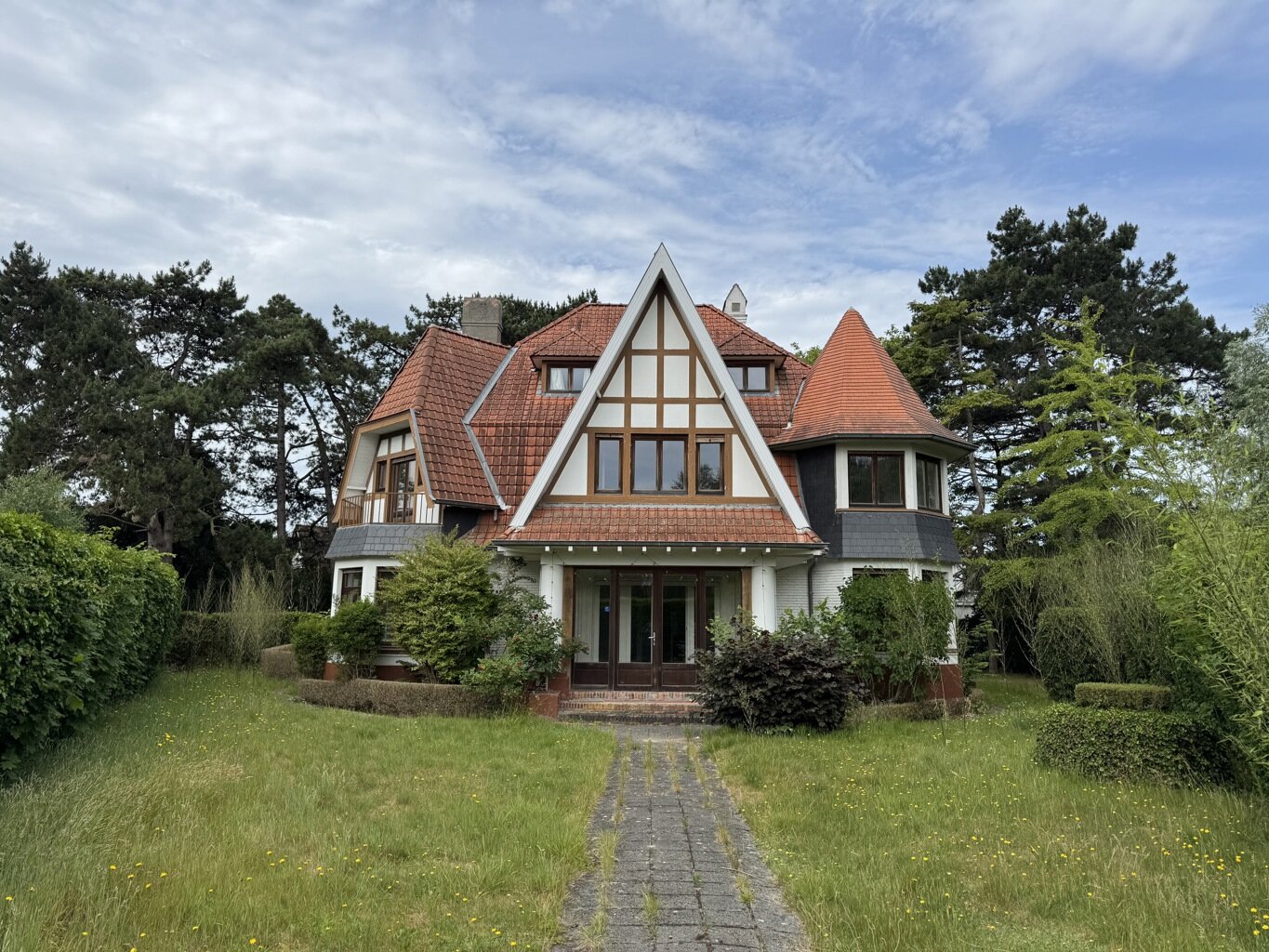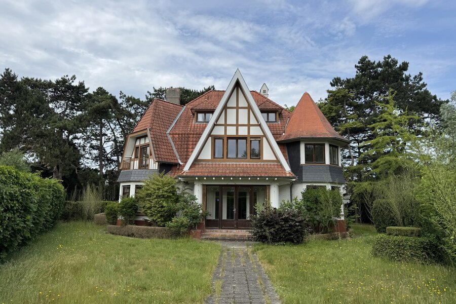 Karaktervolle villa in cottagestijl uit het interbellum, gelegen in één van de mooiste lanen van het Zoute, op wandelafstand van het Kerkje van de Dominikanen en de "Royal Zoute Tennis Club". Indeling: inkomhall met vestiaire en gastentoilet. Ruime woon- en eetkamer met mooie zichten op de tuin. Afzonderlijke keuken. Op de eerste verdieping: 5 ruime slaapkamers. Praktische douchekamer. Op de 2de etage: 6de en 7de slaapkamer. Badkamer. Zolderruimte. Inpandige garage. Bezoek na afspraak via één van onze kantoren.