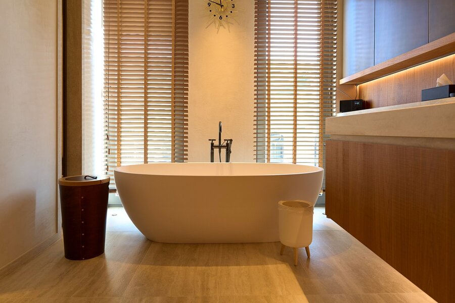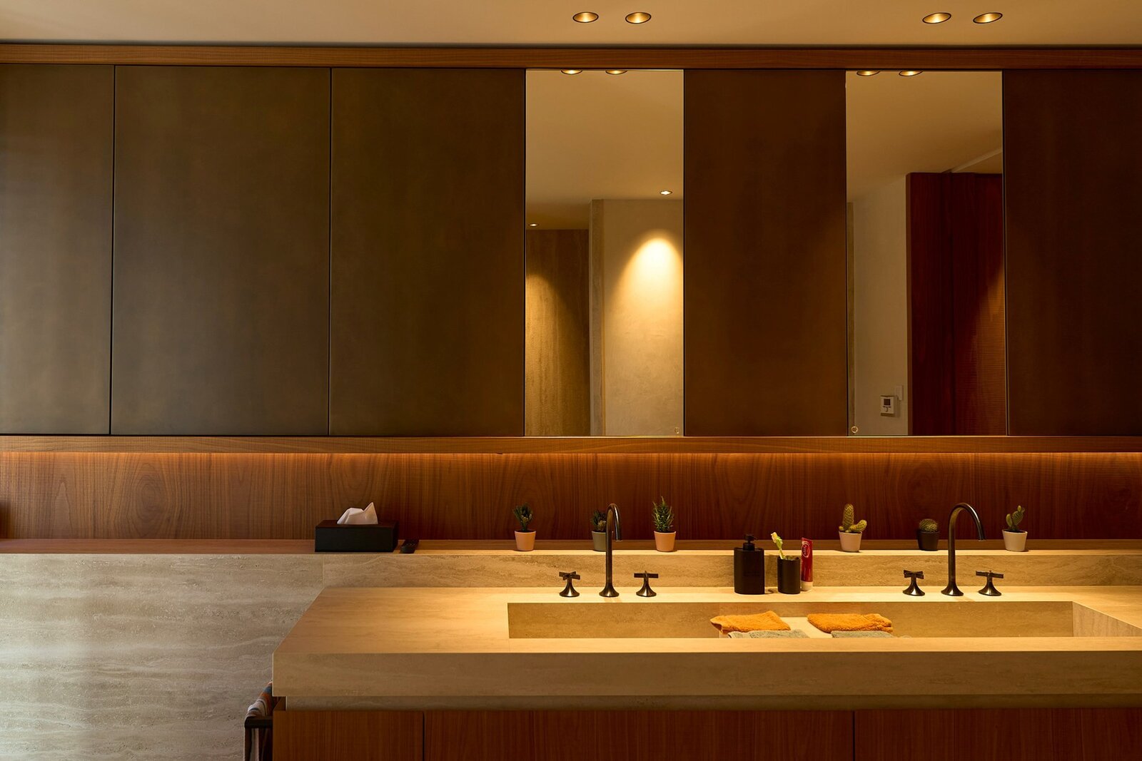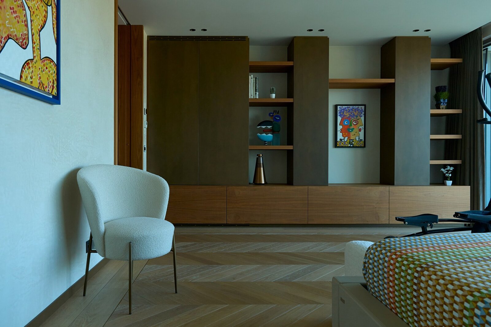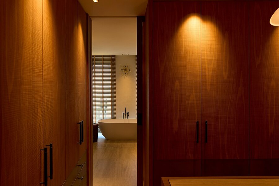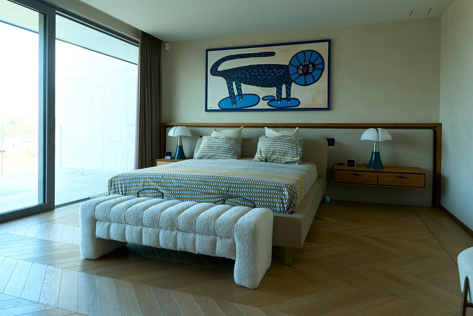 Masterbedroom van 30m² met toegang naar mooi terras, kleedkamer/dressing voorzien van fraai timmerwerk, luxe badkamer met hoogwaardige natuurstenen afwerking (vrijstaand ligbad, dubbele wastafel in fraai meubelontwerp, ruime inloopdouche en toilet), tweede ruime slaapkamer eveneens voorzien van fraai timmerwerk (kasten) en een luxe douchekamer (vrijstaande wastafel, inloopdouche en toilet).