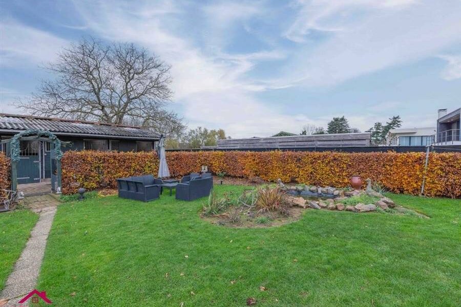 Ook de achtertuin is aangelegd met gazon en beplanting en beschikt over een sfeervol siervijvertje.