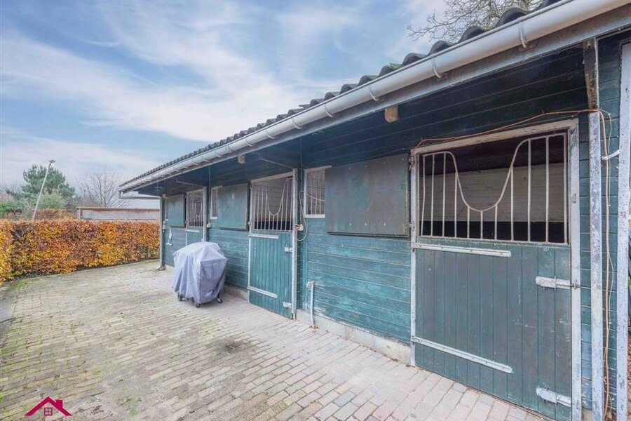 Het perceel is opgedeeld in een tuinzone en een functionele weide, geschikt voor het houden van kleinvee, paarden of pony’s. Daarnaast zijn er drie paardenstallen aanwezig, gelegen aan de voorzijde van de weide.