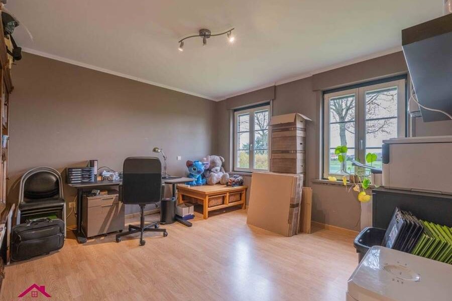 - Slaapkamer 1/bureau (4,00m x 3,95m). Laminaat vloer.