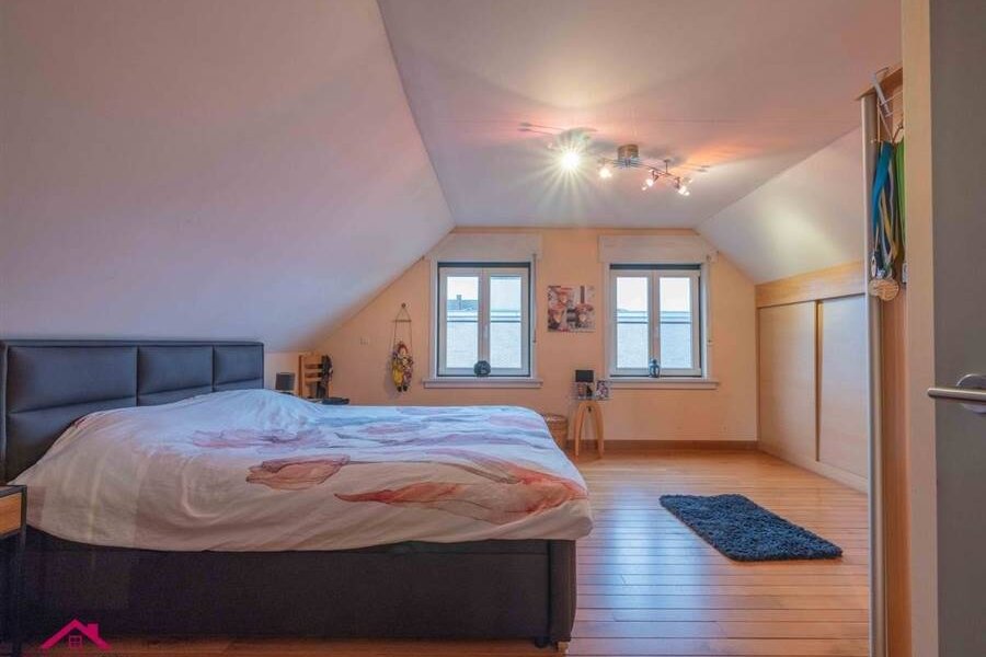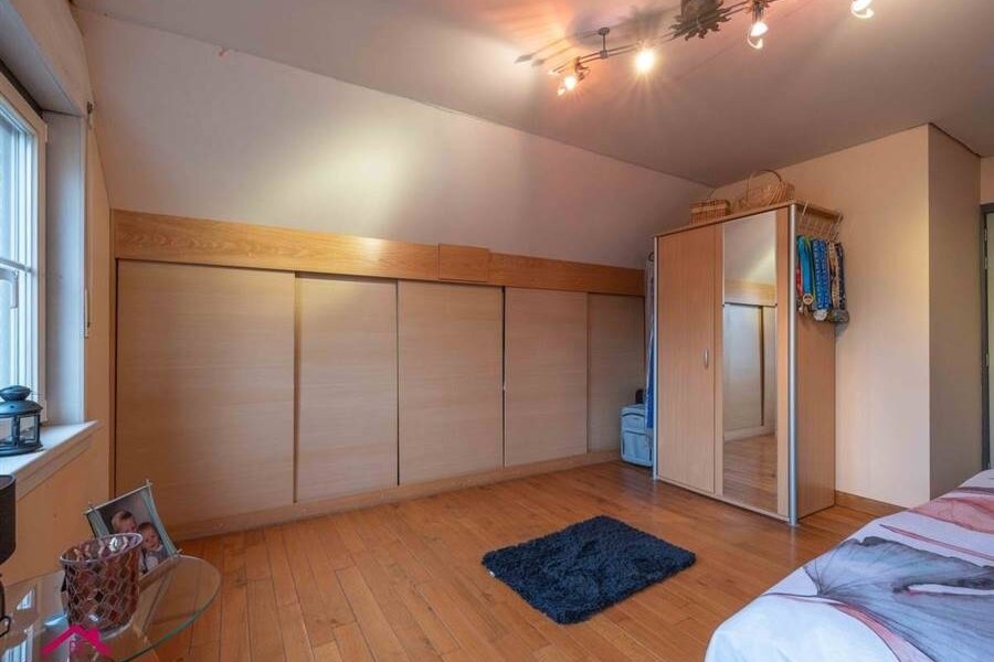 - Slaapkamer 1 (5,10m x 5,60m) met inbouwkasten in de schuine wand van het dak. Parket vloer.