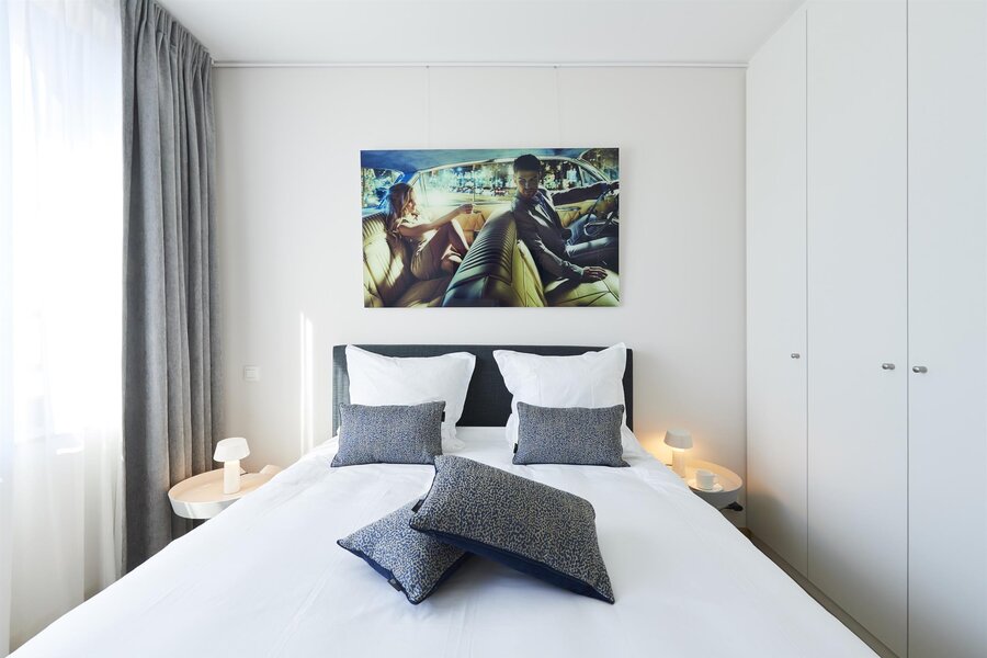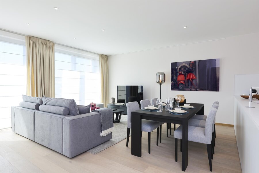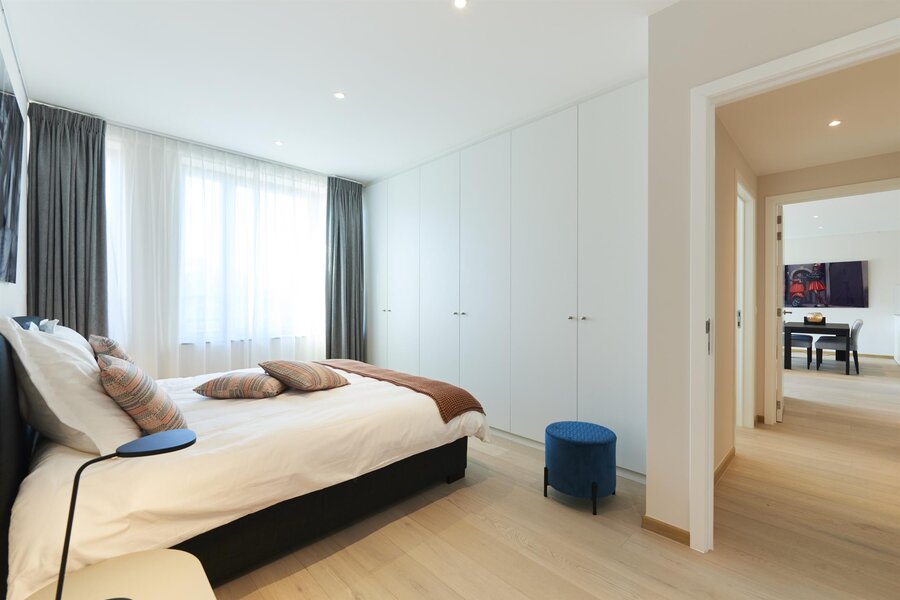 On Avenue de la Toison d'Or, sumptuous furnished apartment with a total surface area of ± 126 m² in the new Cond'Or residence. It consists of an entrance hall with a water closet, a bright living room (± 40 m²) with a fully equipped American kitchen from BULTHAUP, a night hall, 2 beautiful bedrooms (± 16.50 m² and ± 14 m²), a bathroom and shower and a shower room. Beautiful terrace (± 13 m²) facing south. Cellar and a parking space. High-quality finishes and concierge service in the building. Charges: €290/month (Provision for the maintenance of common areas and the elevator and the concierge) PEB B-. To discover as soon as possible!!