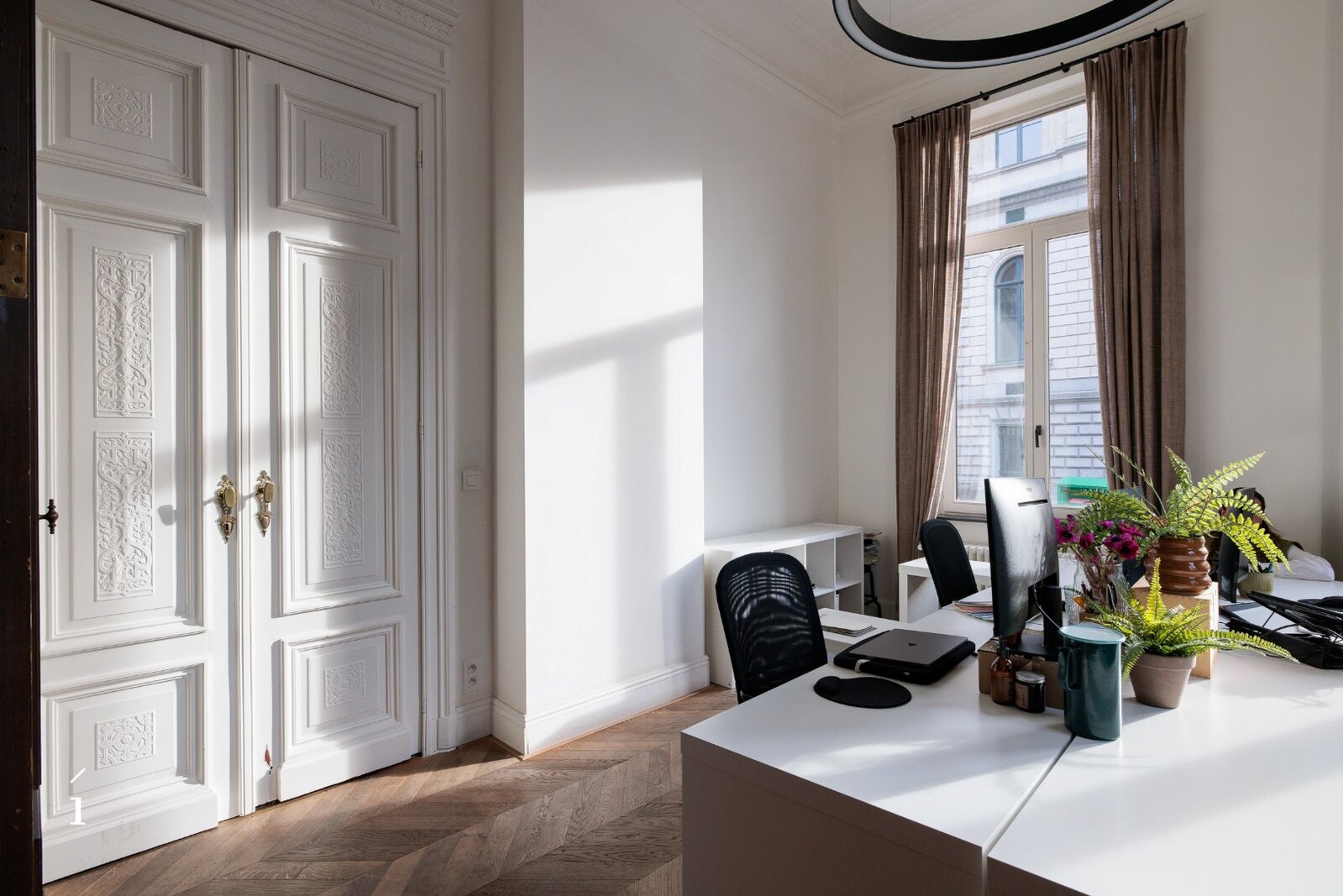 Dit prachtige herenhuis in neoclassicistische stijl met inpandige garages is gelegen in het hart van de Gentse binnenstad, in de Jozef Plateaustraat. Volgens de gevelsteen werd het pand ontworpen door architect Ad. Duvillers. De straat is een brede, licht opklimmende as die haar naam deelt met het universiteitsgebouw Rozier-Plateau en de Nederkouter verbindt met de Sint-Pietersnieuwstraat. Ze staat bekend om haar statige gevels, royale breedte en centrale ligging. Hier geniet u van alle stedelijke voorzieningen op wandelafstand, zonder in te boeten aan bereikbaarheid dankzij de vlotte verbinding met het Zuid.Op wandelafstand ontdekt u een uitgebreid aanbod aan boetieks, sfeervolle horecazaken en alle noodzakelijke voorzieningen. Dankzij de centrale ligging en de vlotte verbinding met de E40 en E17 geniet u hier van een uitzonderlijke bereikbaarheid, midden in het historisch centrum van Gent. Deze unieke eigendom verenigt ruimte, licht en authenticiteit tot een bijzonder harmonieus geheel. Met een bewoonbare oppervlakte van ca. 500 m² biedt het pand een evenwichtige combinatie van comfort en verfijning. De architectuur straalt klasse uit, met royale glaspartijen en een doordachte indeling die elke ruimte op natuurlijke wijze verbindt met het bruisende stadsleven. De leefruimtes ademen geschiedenis en karakter. Authentieke elementen zoals de parketvloeren, statige zuilen, wandtapijten, spreuken en de originele schouw vormen een harmonieus geheel. Dit alles wordt perfect aangevuld met hedendaags comfort en een sfeervolle buitenruimte, gelegen achter het imposante gebouw. Vanuit de keuken en eetkamer geniet u bovendien van een directe verbinding met de buitenruimtes.Via de centrale, monumentale traphal bereikt u de eerste verdieping. Momenteel zijn de vier kamers ingericht als bureauruimtes, maar dankzij de royale volumes en aangename ruimtes laten zij zich moeiteloos herinrichten naar een andere invulling. Vanuit de houten erker geniet u bovendien van een open en uniek zicht op het Instituut der Wetenschappen. Op de bovenverdieping bevindt zich een volledig ingerichte loft van ca. 150 m². De loft omvat een open leefkeuken, twee stijlvolle badkamers, een dressing en twee slaapkamers. Vanuit deze verdieping geniet u bovendien van een prachtig, open zicht over Gent, wat deze woonruimte een bijzonder en exclusief karakter geeft. Vanuit de straat zijn er twee automatische garagepoorten die toegang bieden tot een ruime garage met plaats voor drie wagens. Verder is deze verdieping ingericht met een fitnessruimte, wijnkelder, bergruimtes, wasplaats en een apart toilet. Finaal is er de gezellige binnenkoer, een intieme buitenruimte die rust en sfeer uitstraalt.