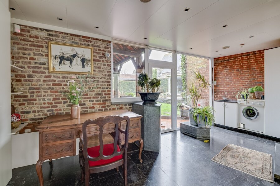 In een oase van rust vindt u deze statige burgerwoning met praktijkruimte in het centrum van Pajottegem, pal naast de Sint-Petrus en Pauluskerk. De karaktervolle woning dateert van 1899 en heeft een perceel van 560m² en een bewoonbare oppervlakte van 432m². De woning combineert authentieke charme met hedendaags wooncomfort. Bij het betreden van het pand valt onmiddellijk het enorme volume en de bijzondere lichtinval op. De ruimtes vloeien moeiteloos in elkaar over en hierdoor leent deze eigendom zich uitstekend voor diverse doeleinden Op het gelijkvloers verwelkomt de inkomhal u in een lichtrijke leefruimte met eetkamer, omringd door grote raampartijen die uitkijken op de prachtige tuin. Verder zijn er een berging, toilet, keuken en eetkamer, bureau en praktijkruimte. De praktijkruimte op het gelijkvloers beschikt over een aparte inkom en is ideaal voor diverse beroepsactiviteiten zoals vrije beroepen, atelier of kantoor. In de mooi aangelegde stadstuin geniet u volop van de rust en de prachtige zichten op de Sint-Petrus en Pauluskerk. Ook is er aanpalend een overdekte veranda met berging. Op de eerste verdieping bevinden zich drie ruime slaapkamers en een badkamer. Tevens is er ook een studio met een leef-/slaapruimte, een eigen keuken en een badkamer. Kan eventueel als 4de slaapkamer dienen of als kangoeroewoning gebruikt worden. De ruime zolderverdieping is bereikbaar via een vaste trap en kan naar wens verder ingericht worden. Daarnaast is er ook een kelderruimte beschikbaar. Kortom een uniek pand met tal van mogelijkheden voor zowel gemengd als residentieel gebruik. Wenst u meer informatie of een bezoek ter plaatse? Aarzel niet en contacteer ons. Stedenbouwkundige vergunning verkregen Recente bestemming: Woongebied Geen rechterlijke maatregel opgelegd Geen voorkooprecht Geen verkavelingsvergunning Renovatieplicht van toepassing EPC: 433 kWh/m²jaar - UC3532132 P-score: A en G-score: A