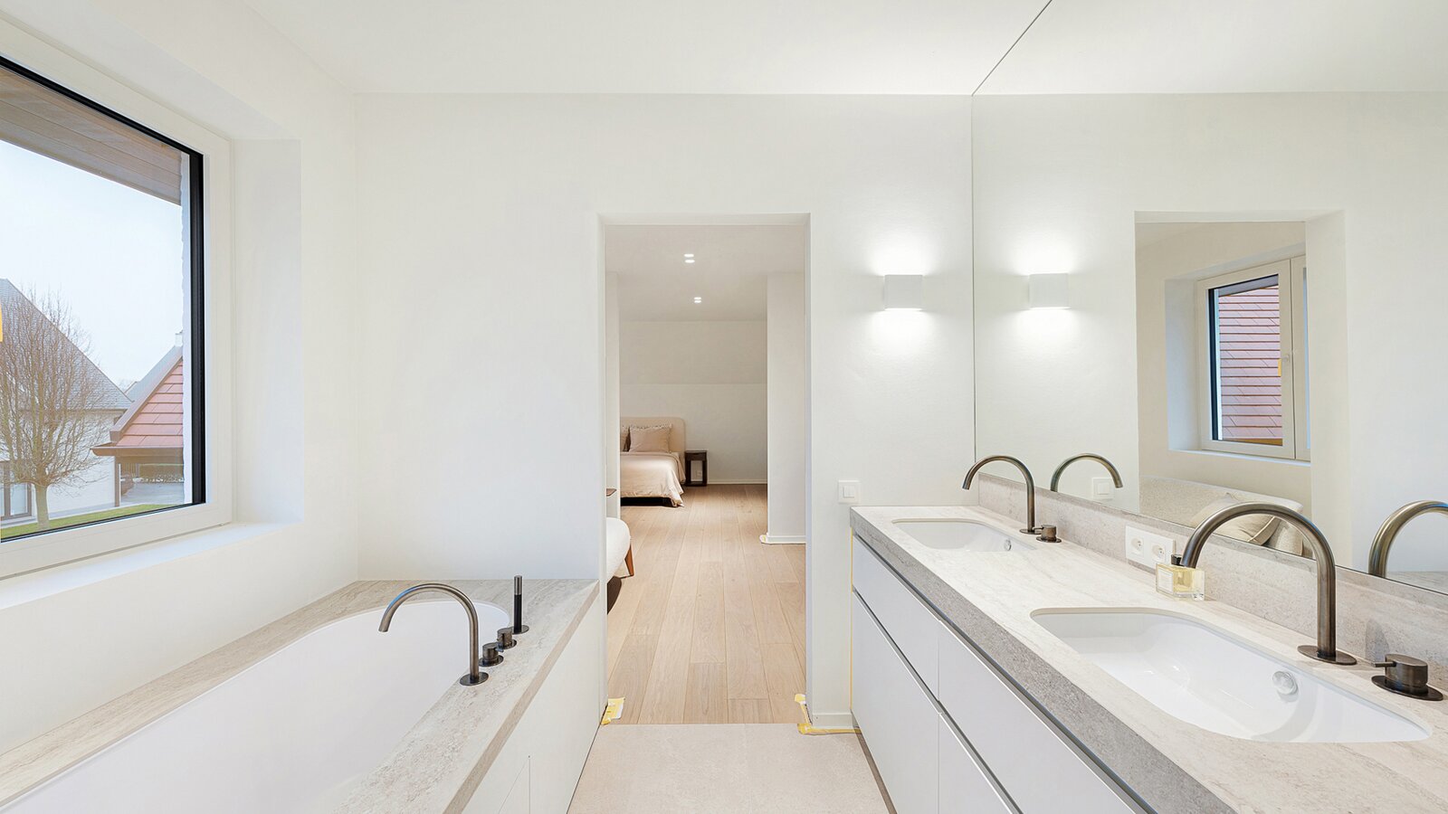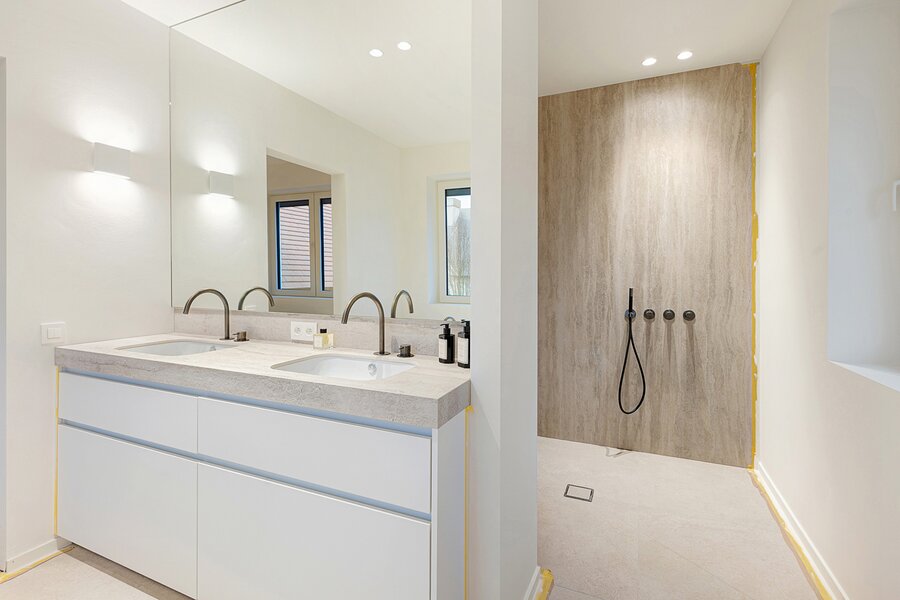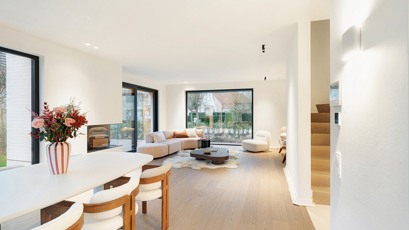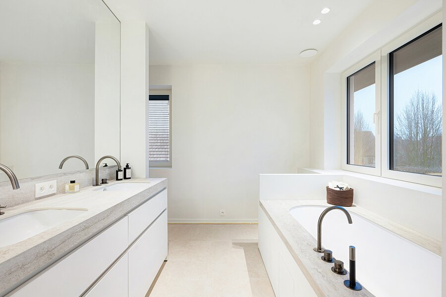 Villa neuve bénéficiant d'une orientation parfaite à une situation calme. Composition : Entrée avec vestiaire et toilette séparée. Agréable et vaste cuisine avec coin à manger. Grand séjour et salle à manger, tous ouvrant sur terrasse et jardin. Au 1er étage : Master bedroom avec dressing et salle de bains. 2 chambres à coucher bien proportionnées, 2 salles de douche. Buanderie. Toilette. Deuxième étage: 2 chambres à coucher. 1 salle de douche. Finitions luxueuses. Garage spacieux et parking extérieur pour 3 voitures. Inspection des plans et cahier des charges, après rendez-vous en nos bureaux.