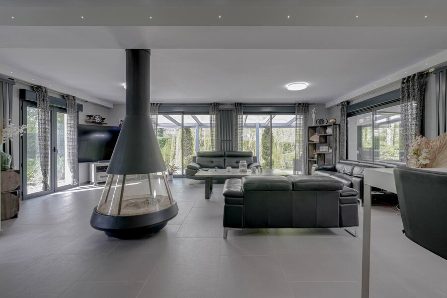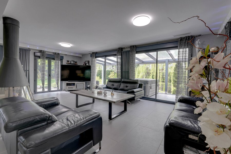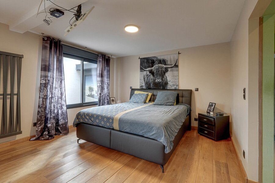 Features: Reversible air conditioning, oil-fired central heating (new condensing boiler), double-flow ventilation, aluminium double-glazed windows, water softener, motorised blinds, alarm, cameras, videophone.