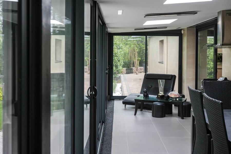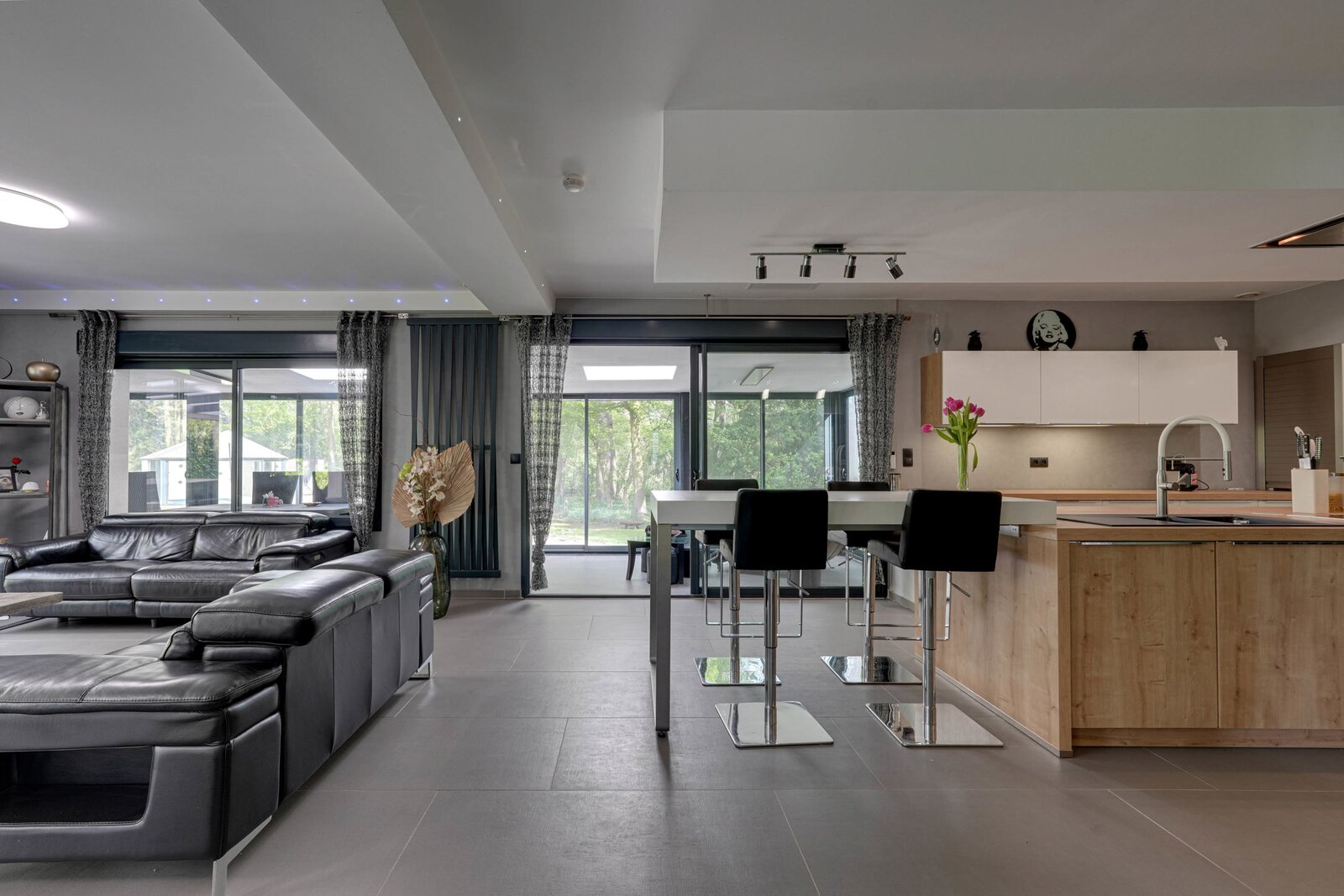 This single-storey home boasts a vast 74m² living room with open-plan kitchen and a 30m² veranda!
